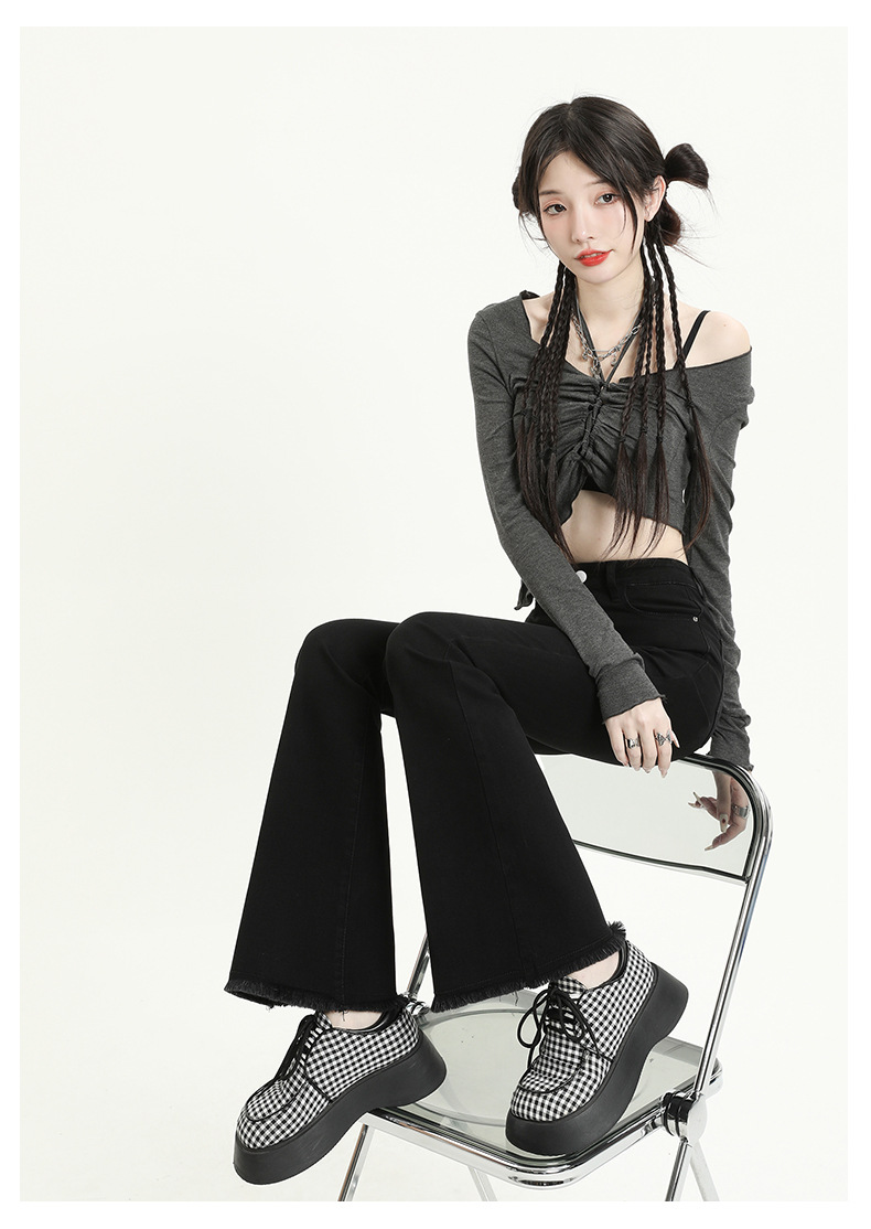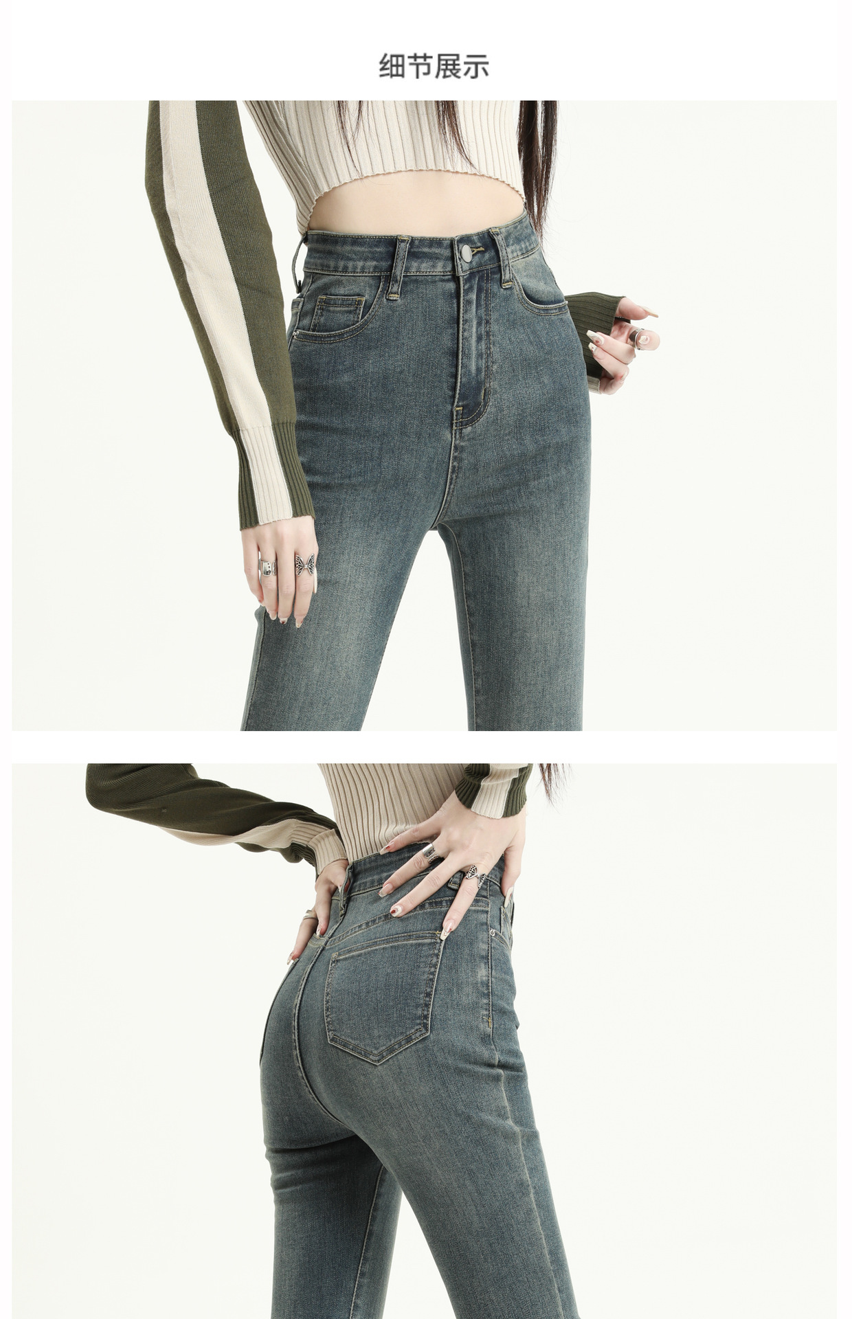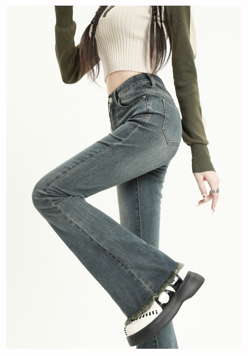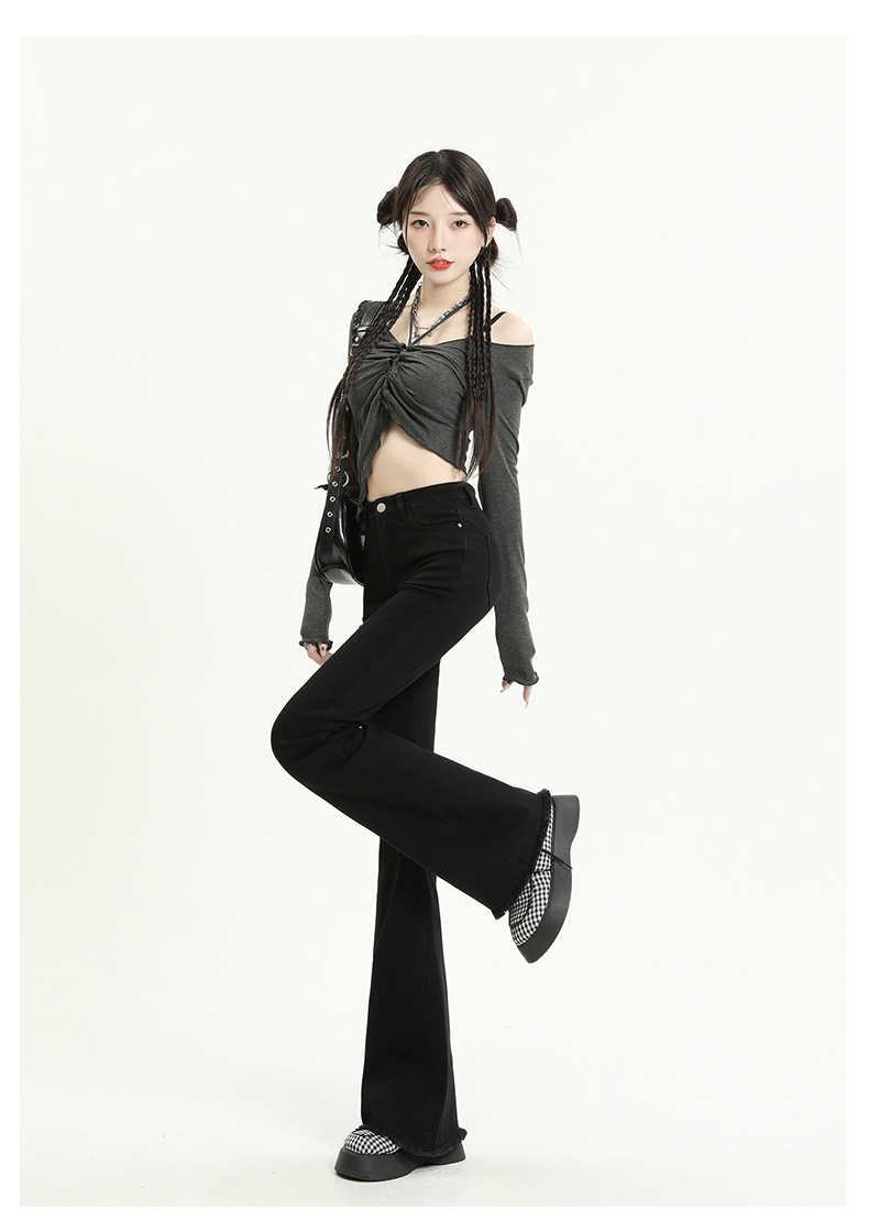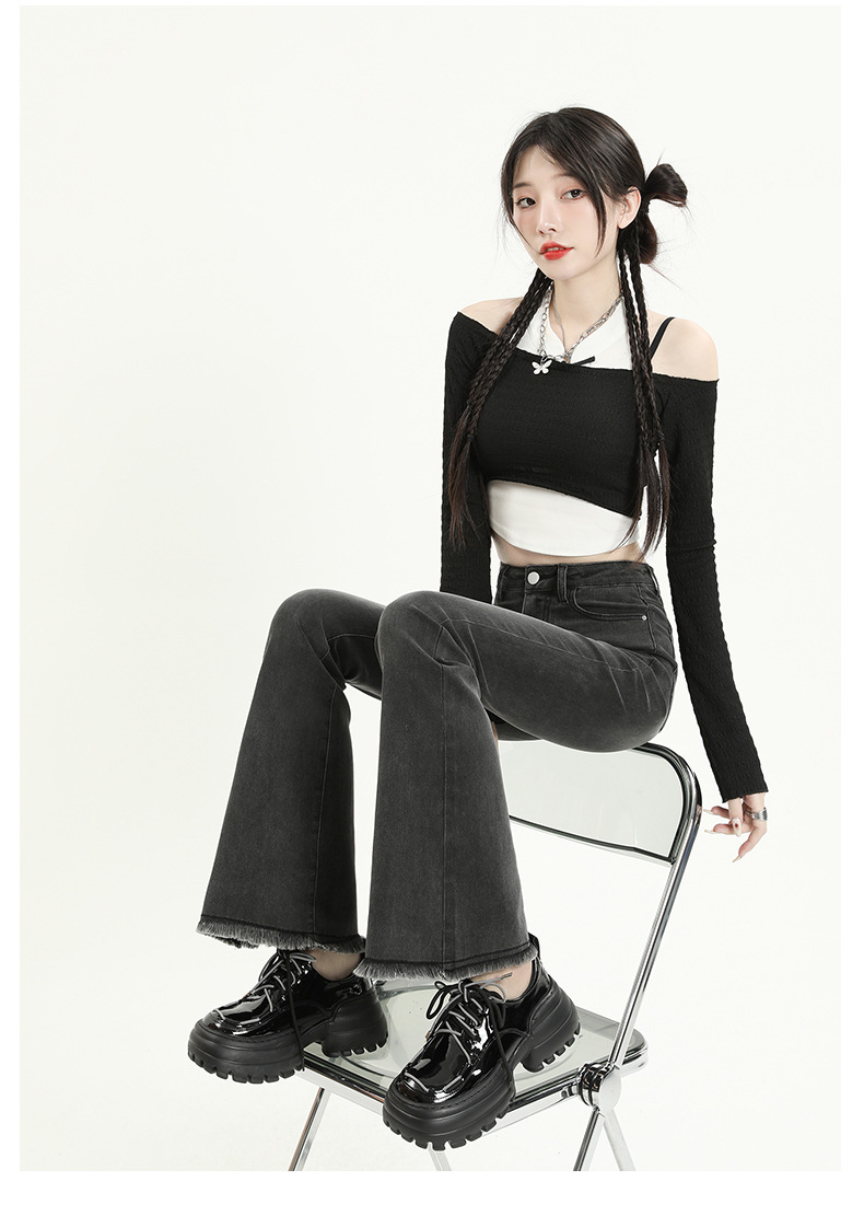 여성용 마이크로 플레어 진, 가을 신상, 한국 스타일, 슬림핏, 하이웨이스트, 키 작은 여성용, 데미지 플레어 팬츠스토어 가기