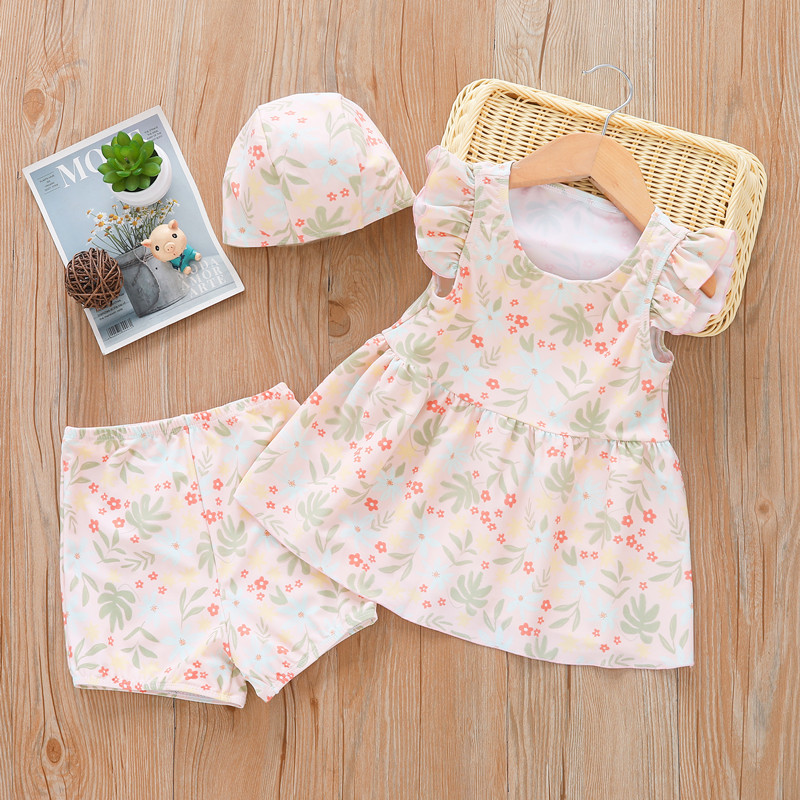 2025 새로운 패션 아기 수영복 작은 신선한 수영복 세트 연꽃 소매 3 피스 수영복