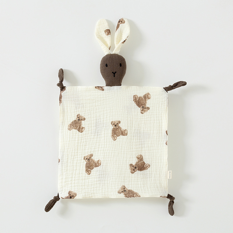 아기 침 흡수 수건 순면 아기 거즈 달래는 수건 신생아 토끼 씹을 수 있는 달래는 손수건 장난감 인형스토어 가기