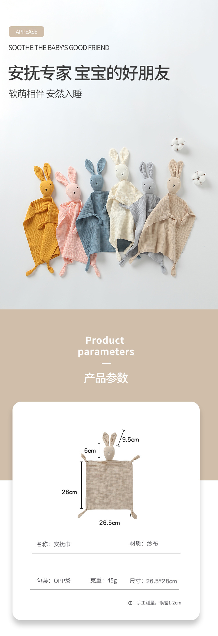 아기 침 흡수 수건 순면 아기 거즈 달래는 수건 신생아 토끼 씹을 수 있는 달래는 손수건 장난감 인형