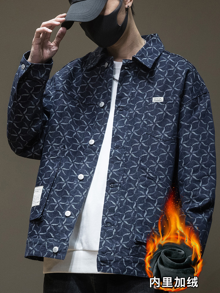 트렌디 한 남자의 잘 생긴 후라이드 스트리트 데님 코트 남자의 2022 가을과 겨울 New 기모 남자의 청소년 조수 브랜드 봄과 가을 재킷스토어 가기