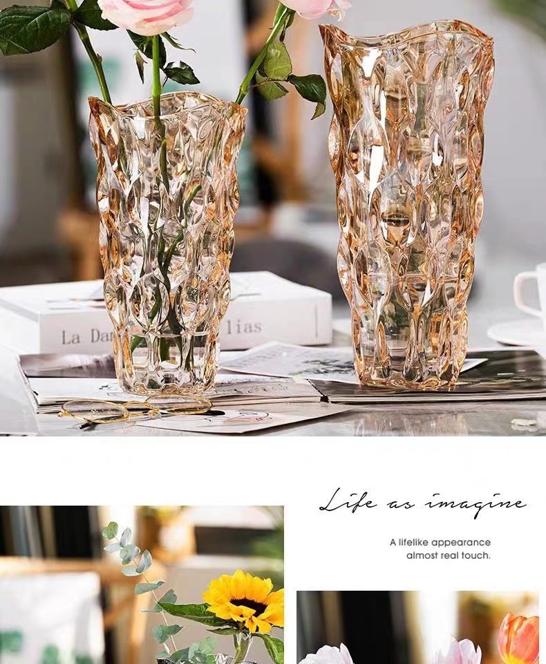 아메리칸 라이트 럭셔리 류큐 라이트 크리스탈 유리 꽃병 거실 모델 룸 호텔 꽃 배열 장식 장식품 공예품 도매