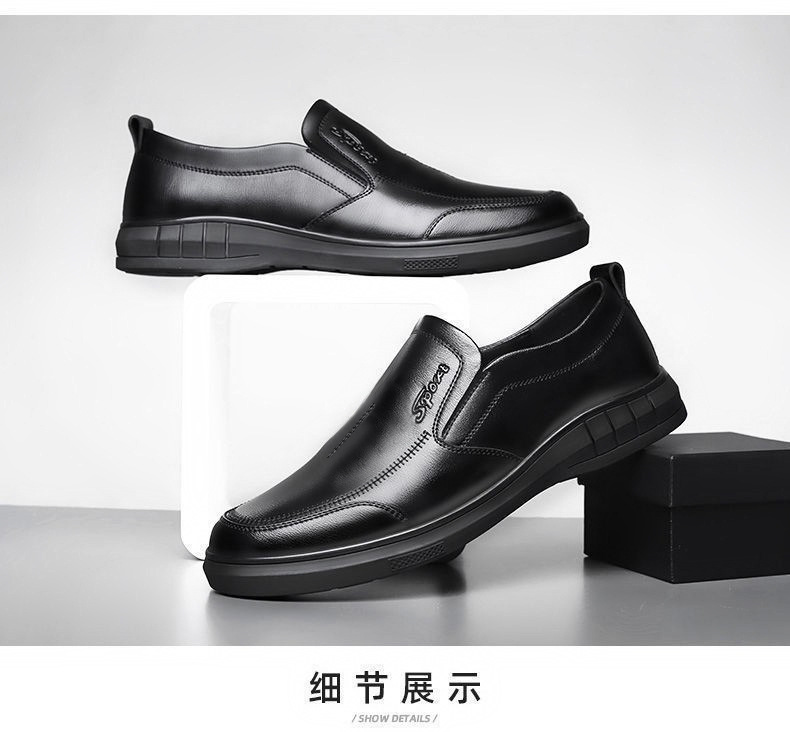 새로운 캐주얼 가죽 신발 비즈니스 편안한 모든 매치 작업 신발 슬립온 게으른 신발 중년 및 노인 아빠를 위한 블랙 가죽 신발스토어 가기