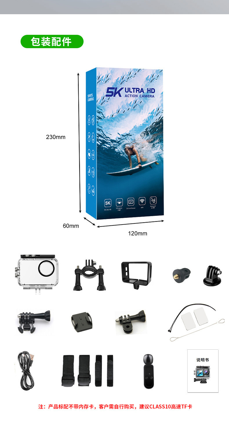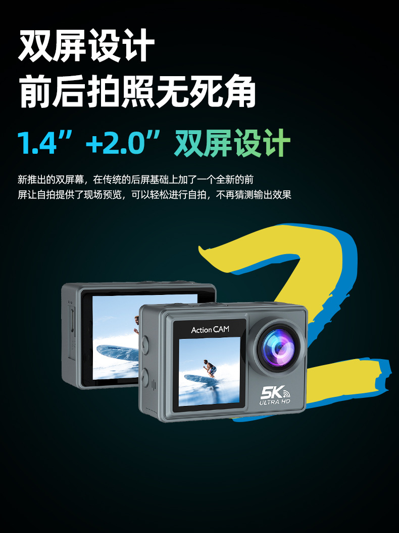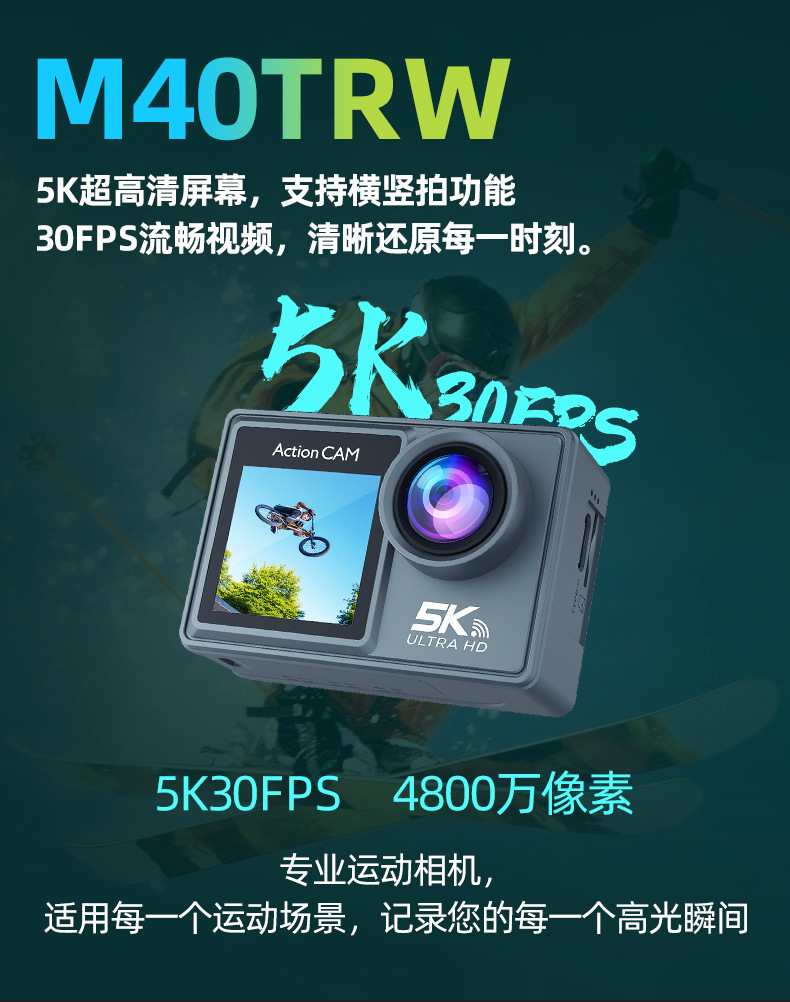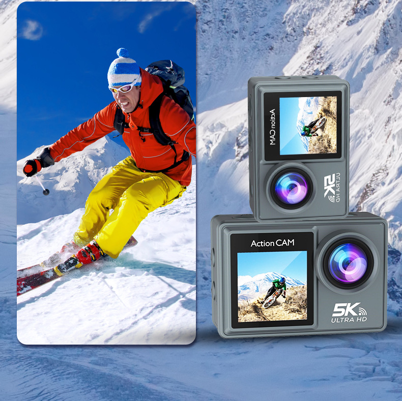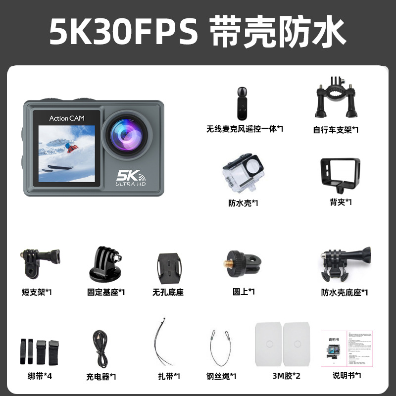 새로운 5K 스포츠 카메라 안티 쉐이크 방수 HD 듀얼 스크린 원격 제어 타고 야외 촬영 미니 카메라 공장스토어 가기