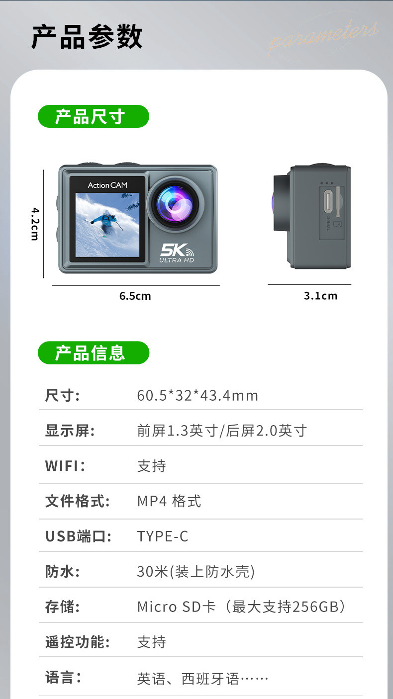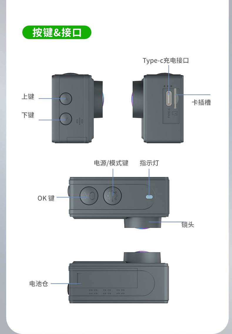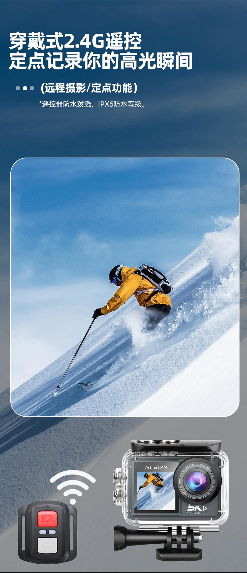 새로운 5K 스포츠 카메라 안티 쉐이크 방수 HD 듀얼 스크린 원격 제어 타고 야외 촬영 미니 카메라 공장스토어 가기