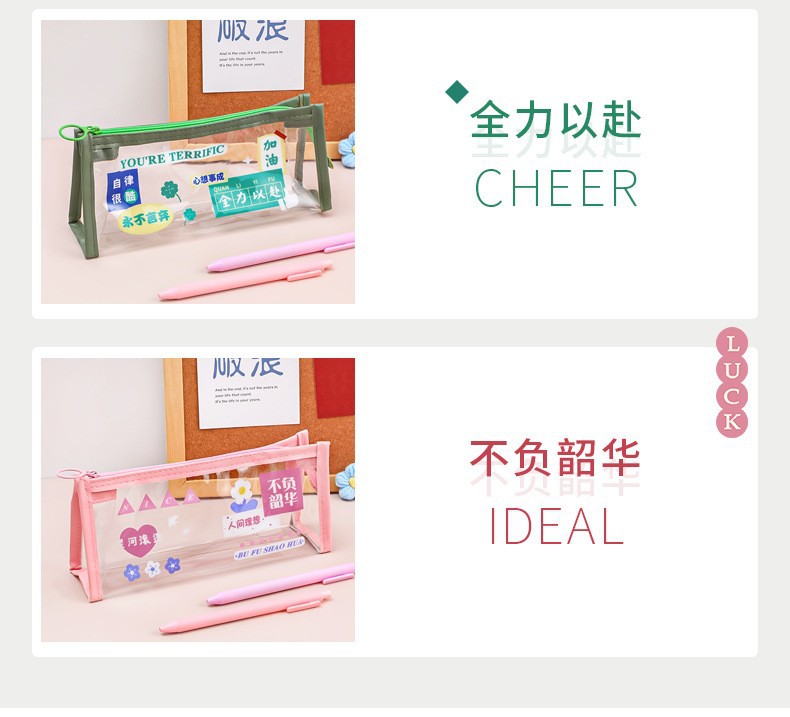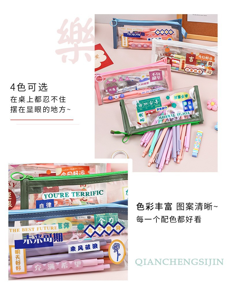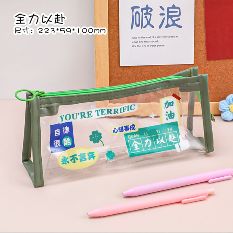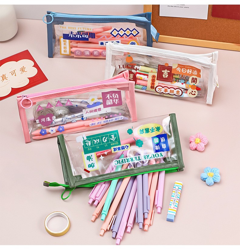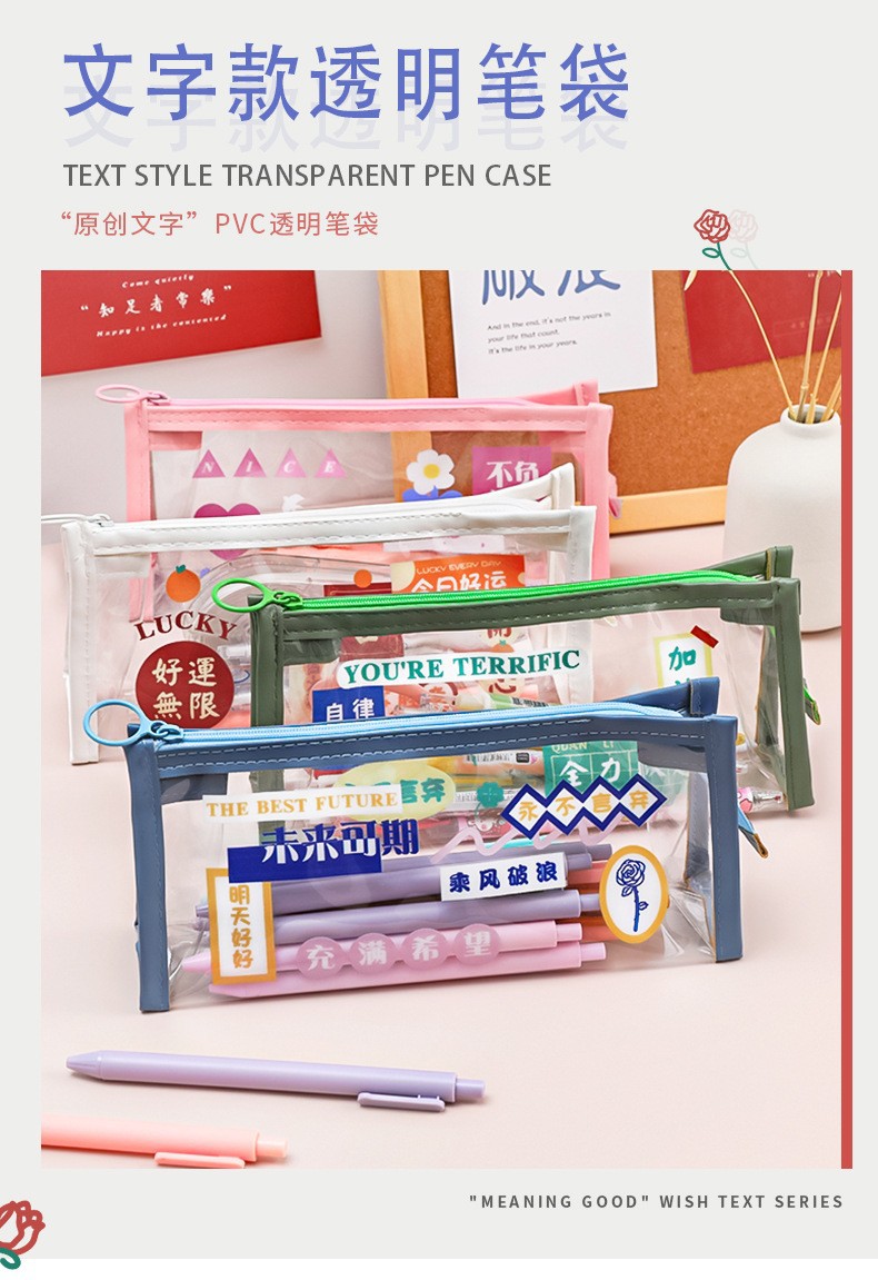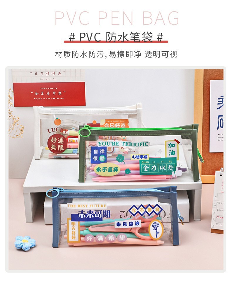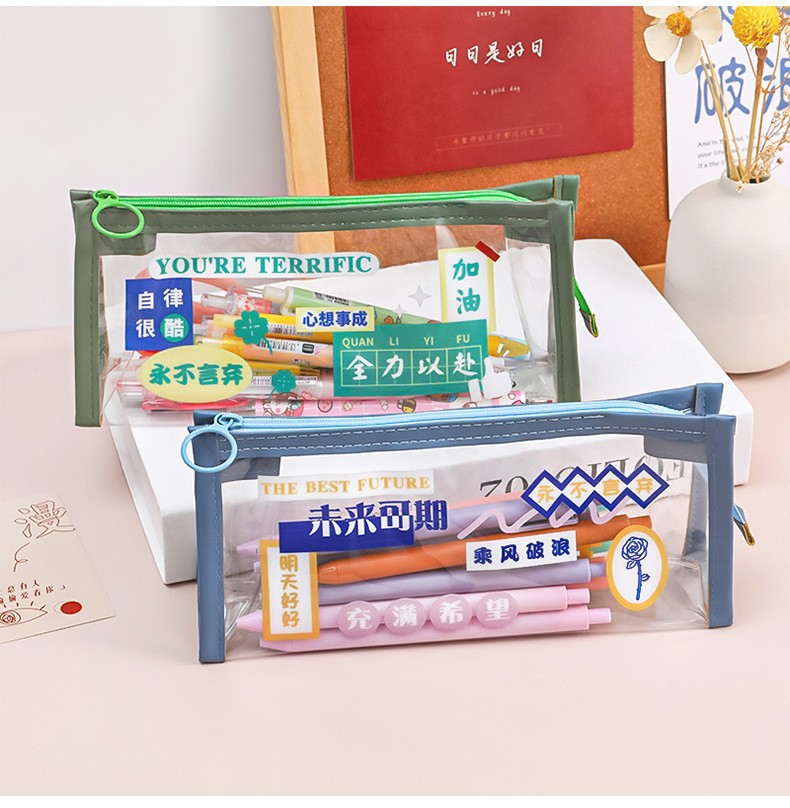 창조적 인 영감 쓰기 연필 가방 PVC 투명 연필 가방 학생 보관 문구 가방 대용량 연필 가방 문구 상자