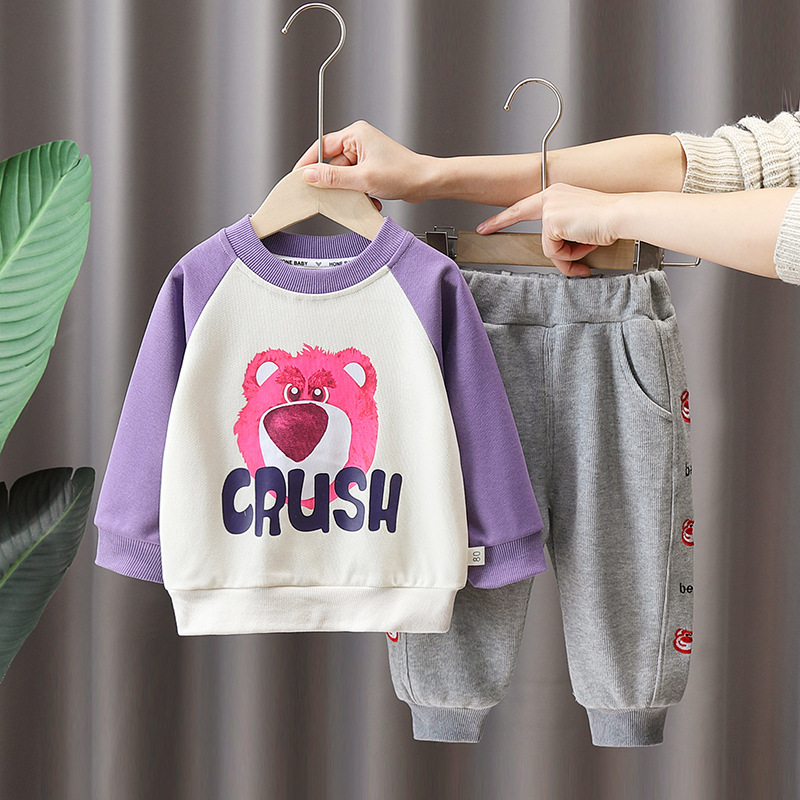2023 봄과 가을 새로운 아기 봄 베리 곰 조끼 세트 어린이 가을 서양 스타일 캐주얼 투피스 아동 의류