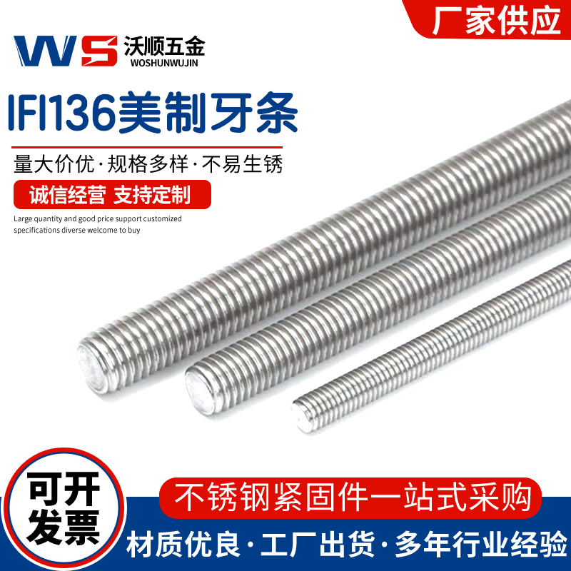 316 304 스테인리스 스틸 미국 덴탈 바 IFI136 전체 치아 나사 1/4-20*1 미터 전체 실 7/8-9*1 미터스토어 가기
