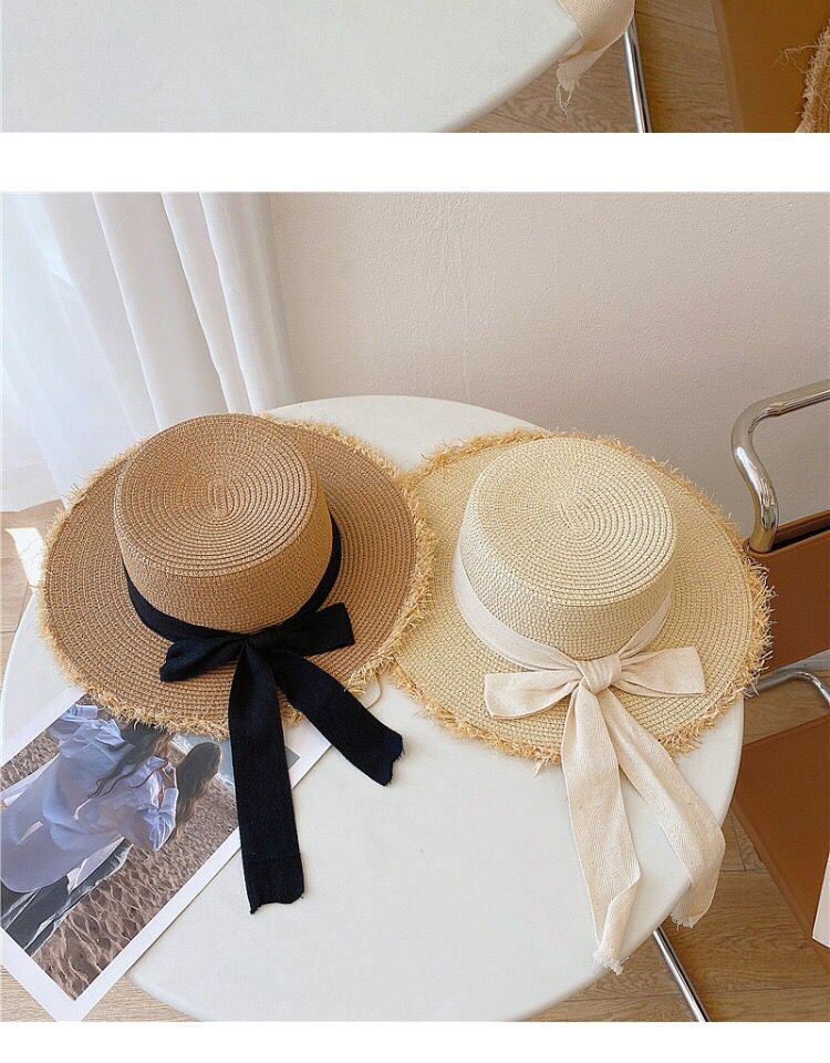일본식 모든 매치 생 밀짚 모자 여성용 여름 플랫 탑 여행 태양 모자 신선한 활 차양 비치 모자