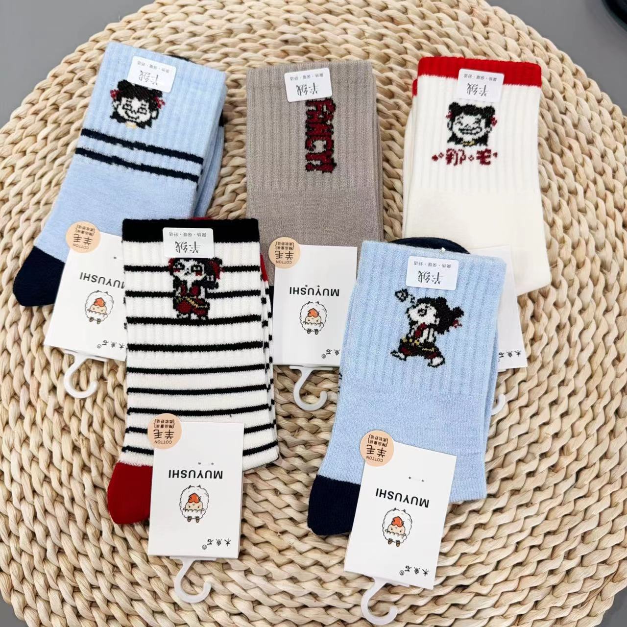 목유석 캐시미어 양말 어린이 양말 겨울용 두꺼운 아동 양말 만화 중목 양말 유아 양말 큰아이 양말 도매