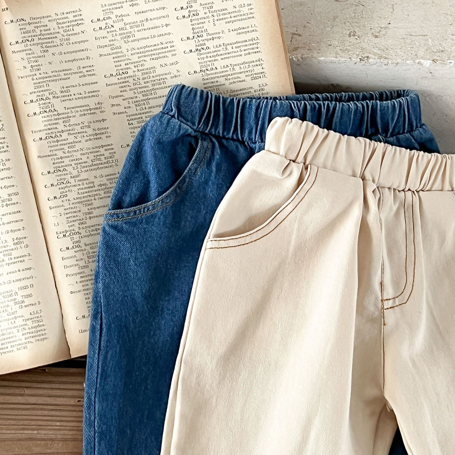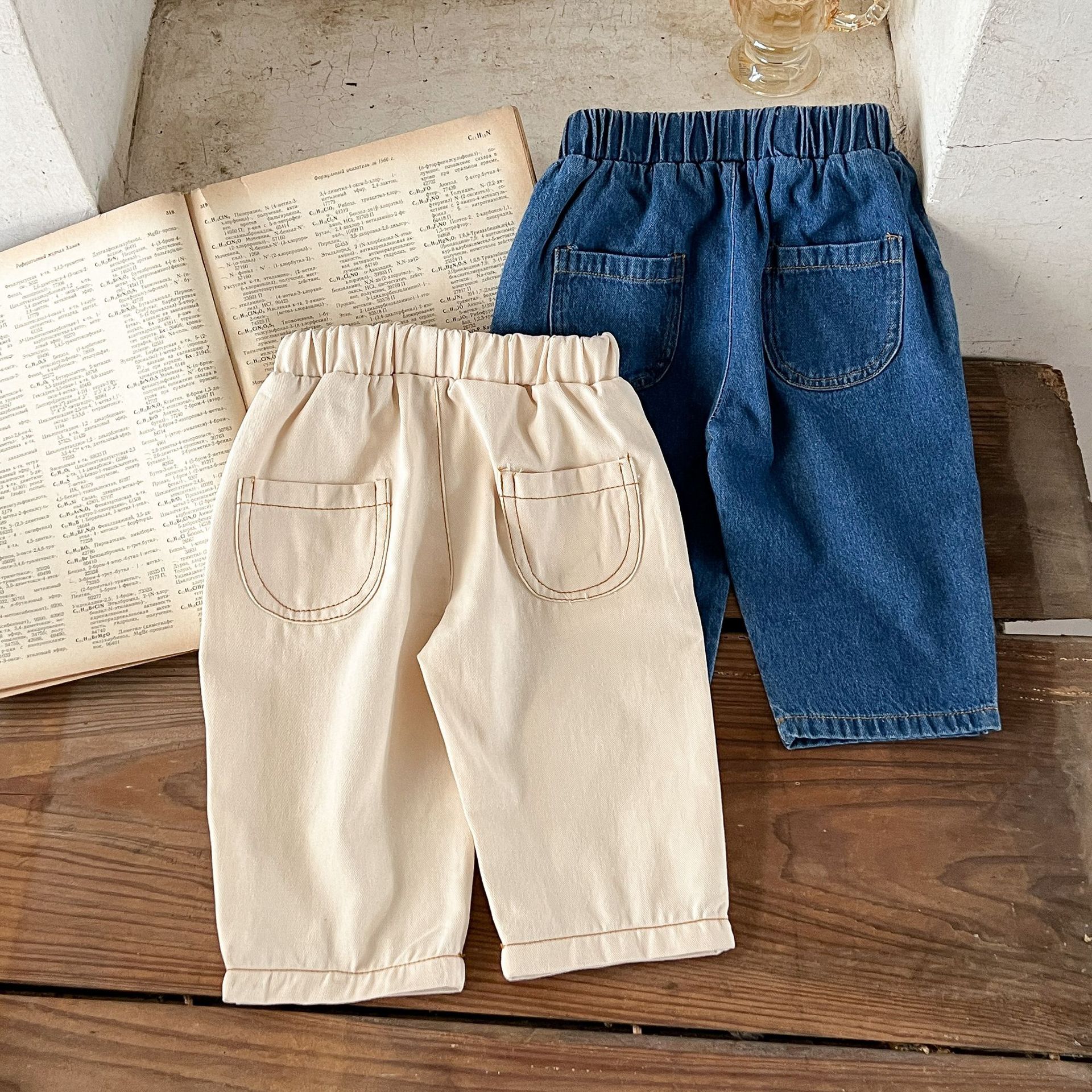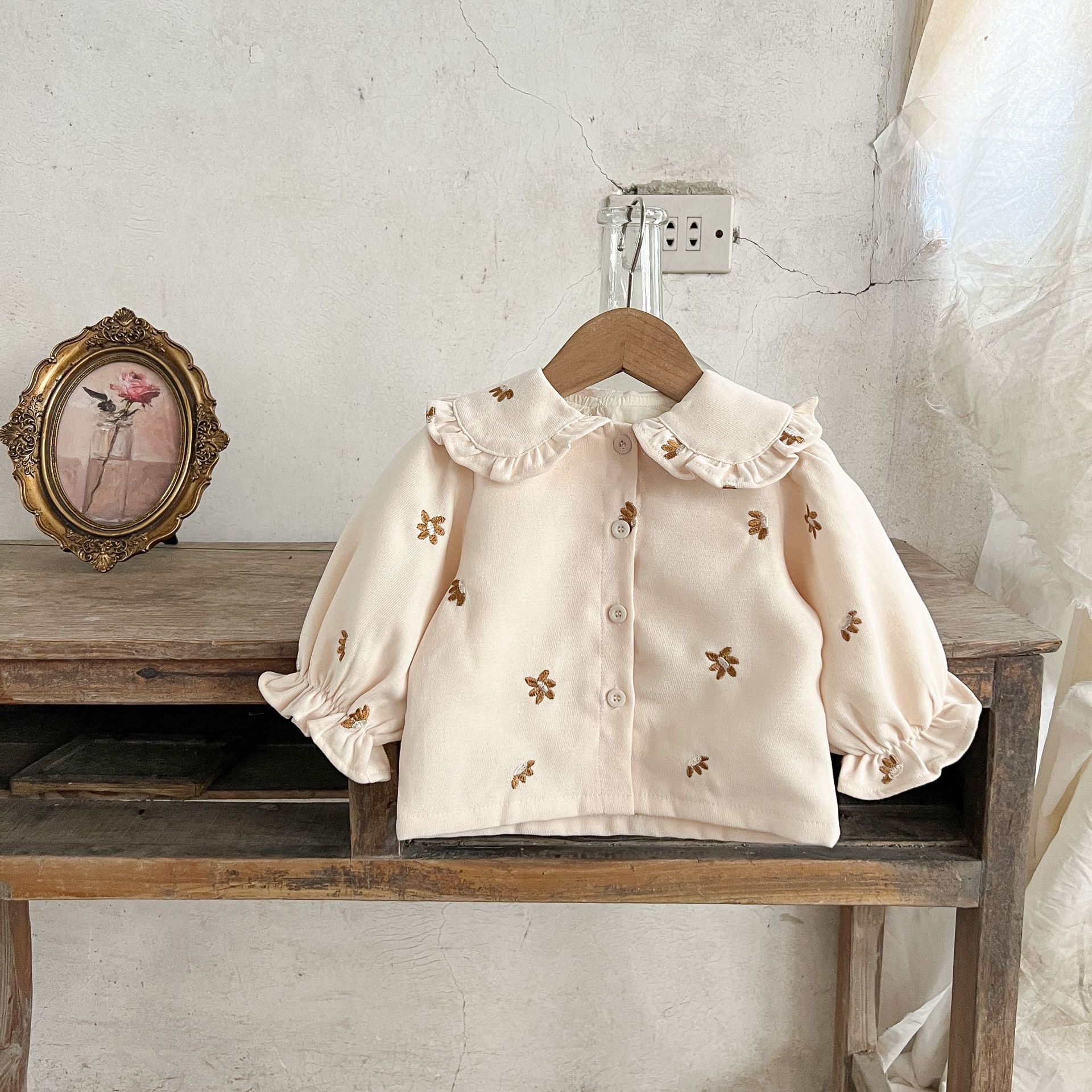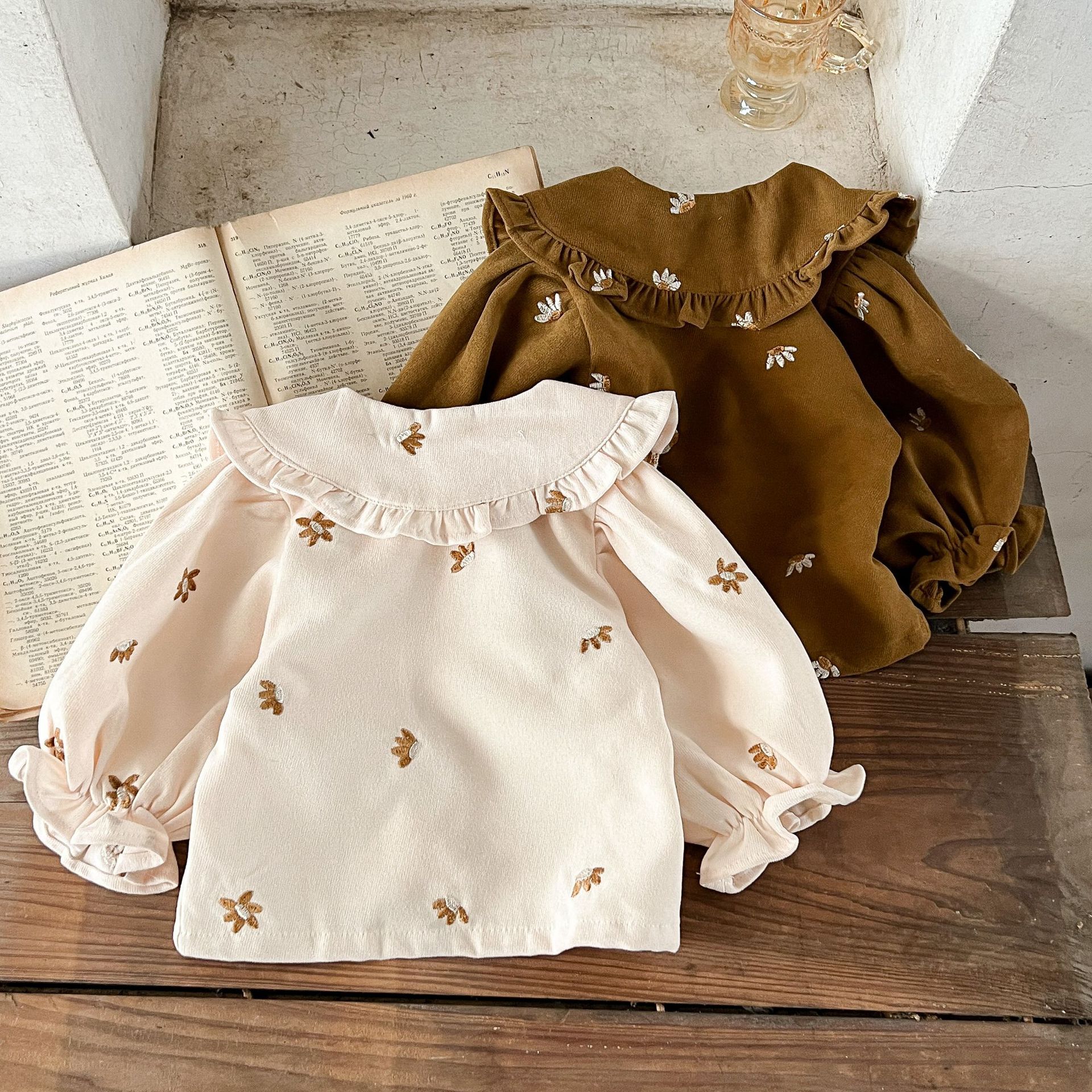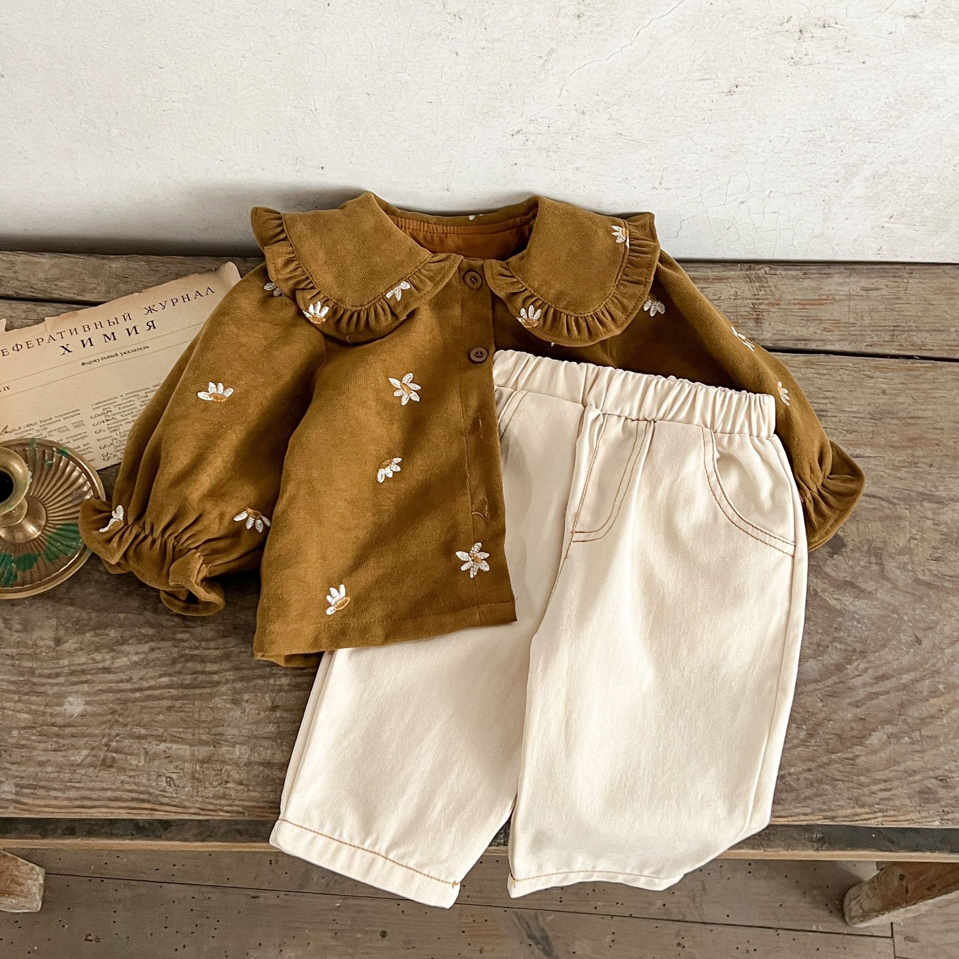 한국식 봄 소녀 코듀로이 자수 옷깃 셔츠 + 청바지 세트 면 느슨한 투피스 패션