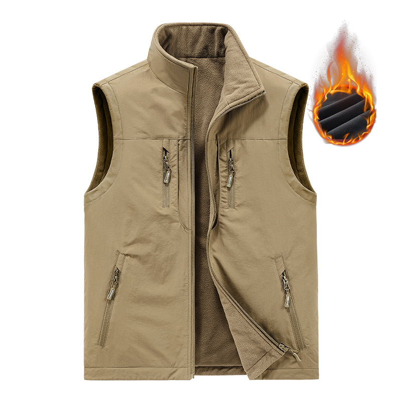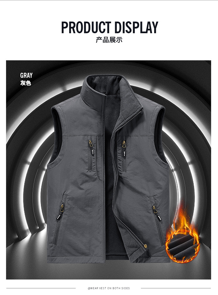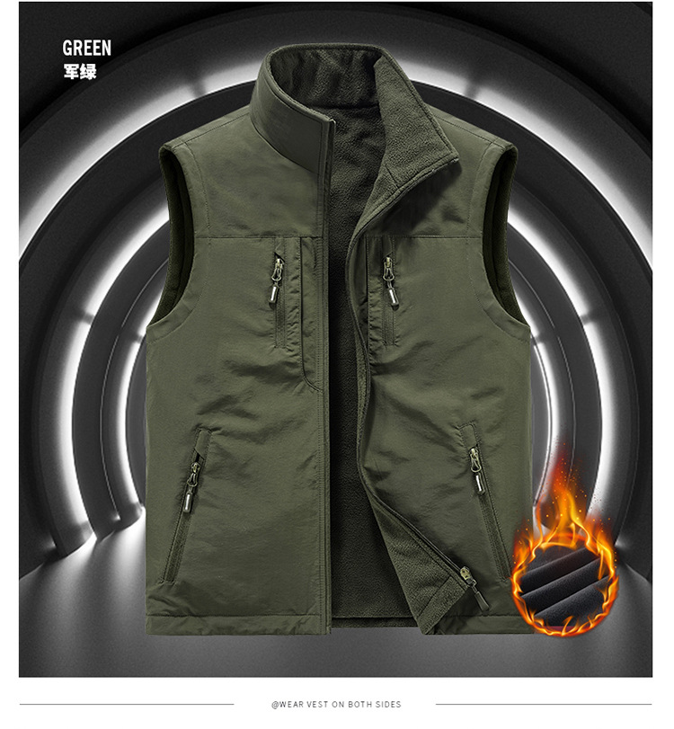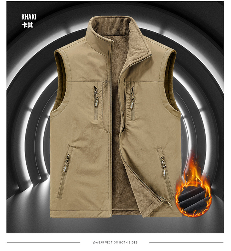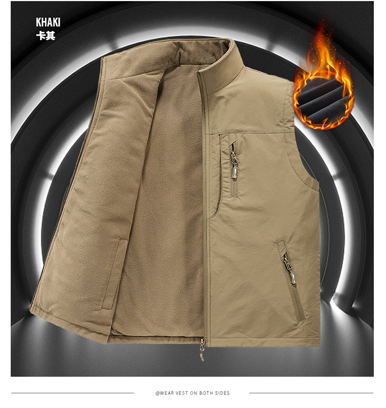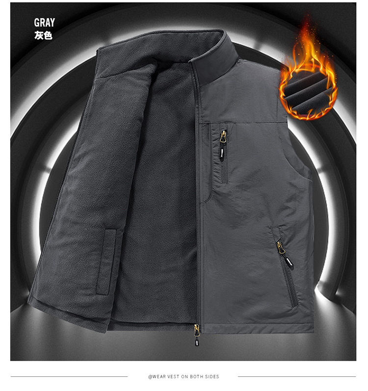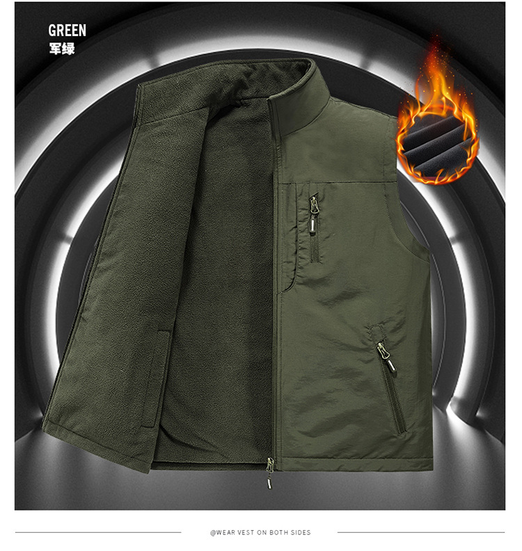 [양면착용] 야외 속건 조끼 남성 가을과 겨울 기모 조끼 조끼 조끼 조끼 플러스 사이즈 캐주얼 코트