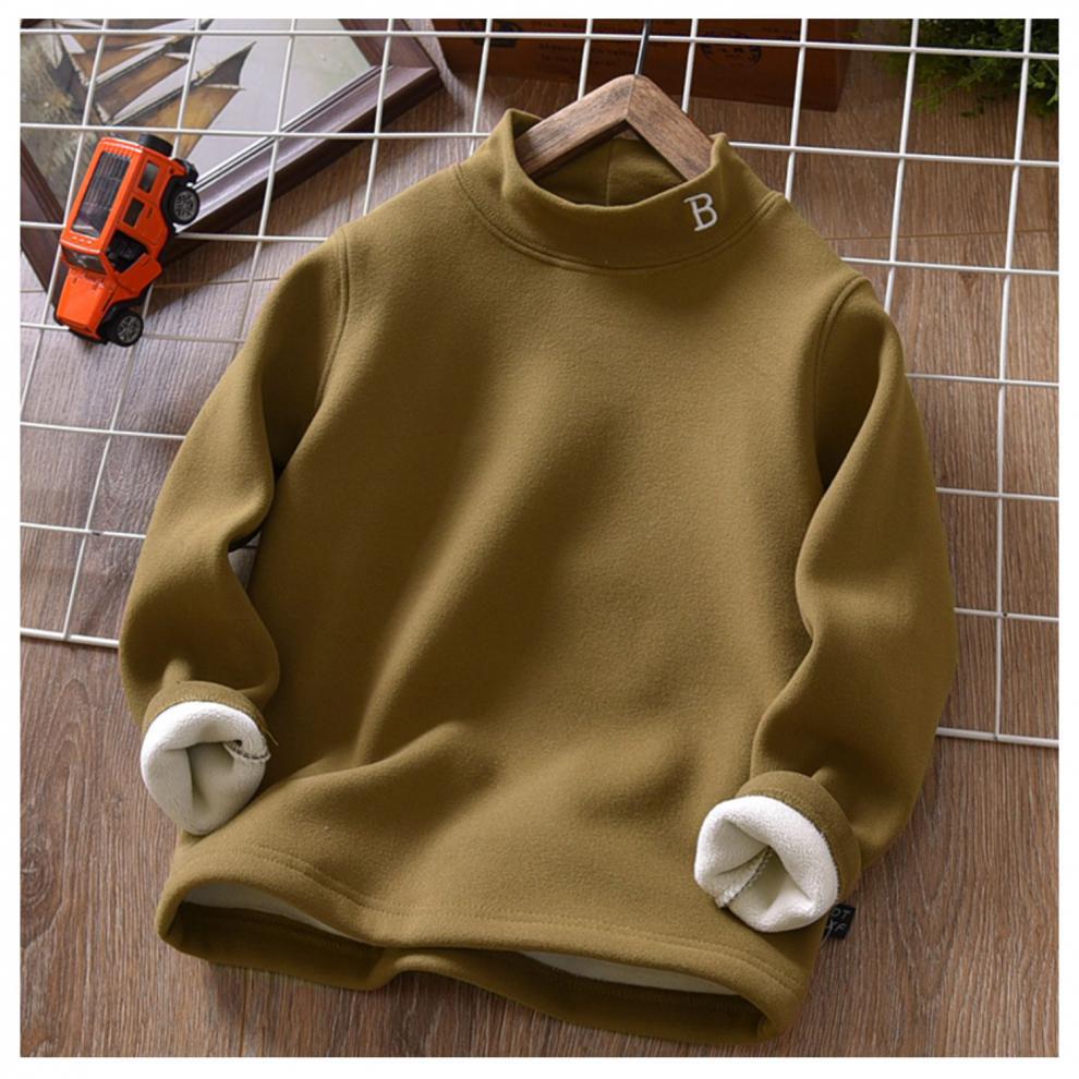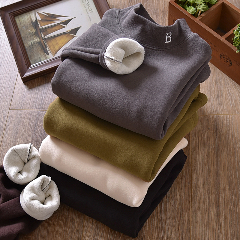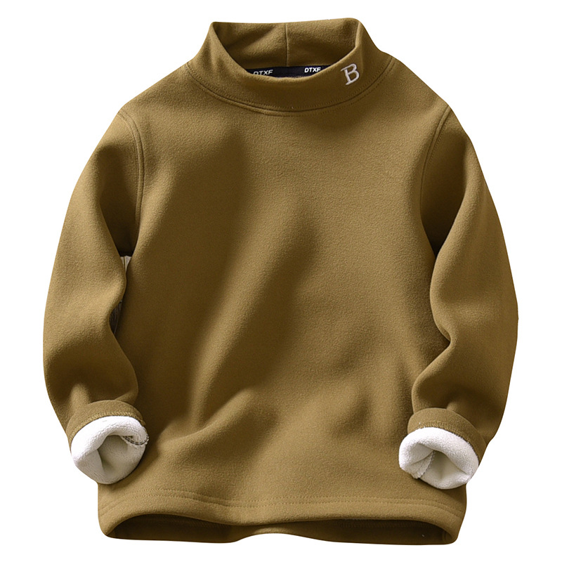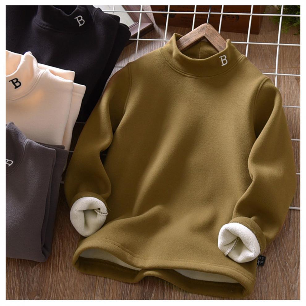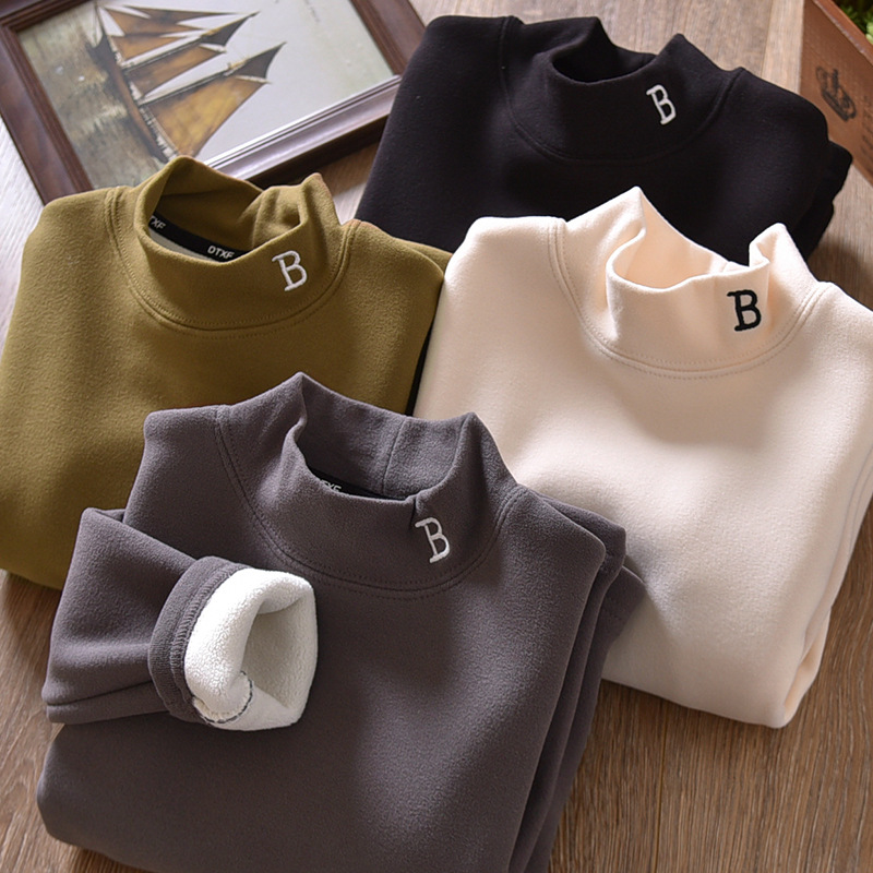 아동복 겨울 남아용 베이스 레이어 플러스 벨벳과 두꺼운 중대형 아동용 벨벳 자수 아동용 하프 터틀넥 따뜻한 상의 트렌디스토어 가기