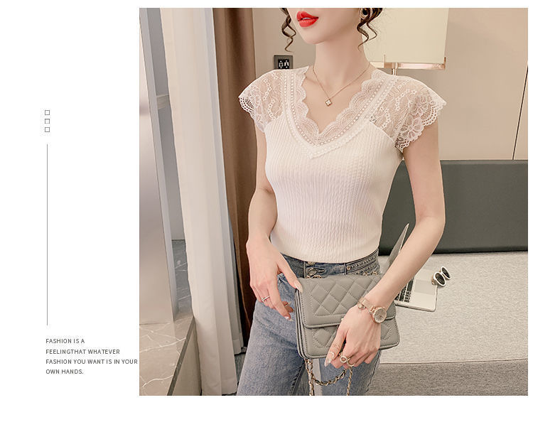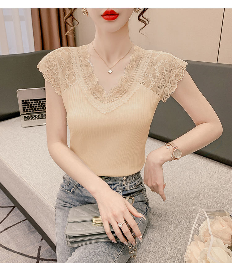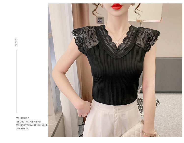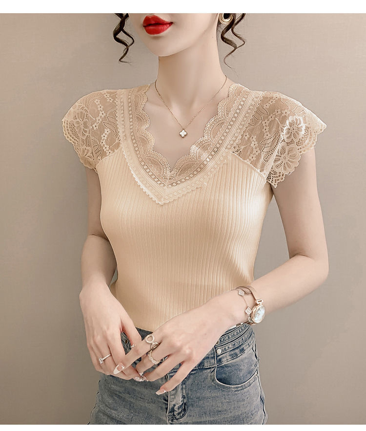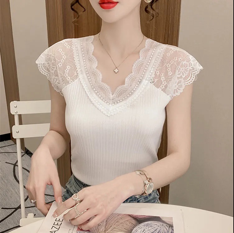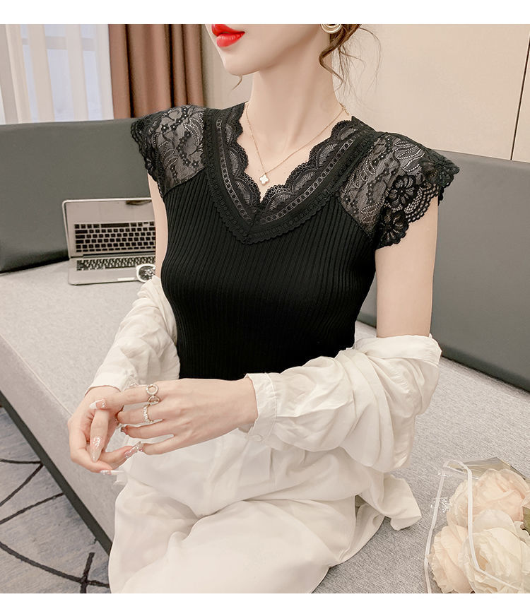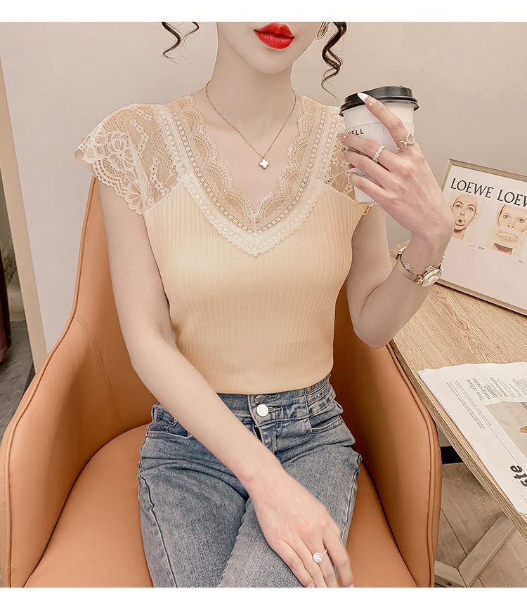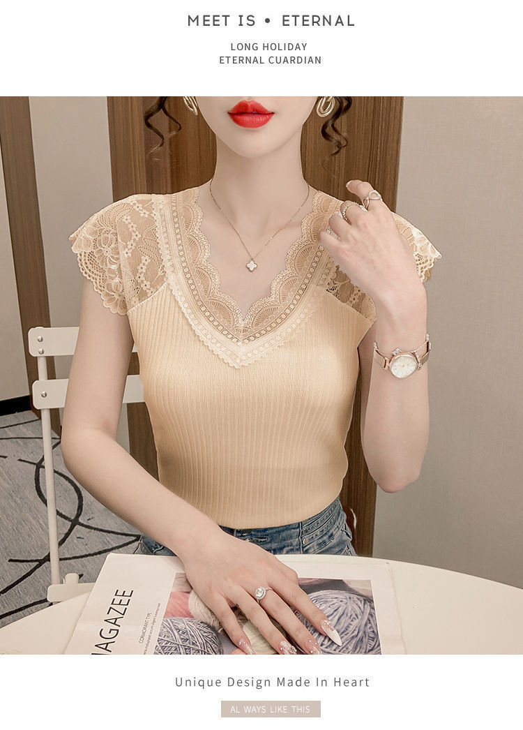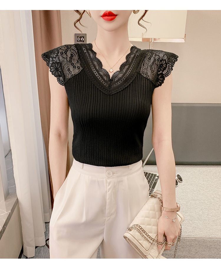 레이스 이너 레이스업 탱크탑 여성용 빅사이즈 다용도 브이넥 신축성 슬림핏 이너웨어 티셔츠 여름 슬림핏 타이트핏