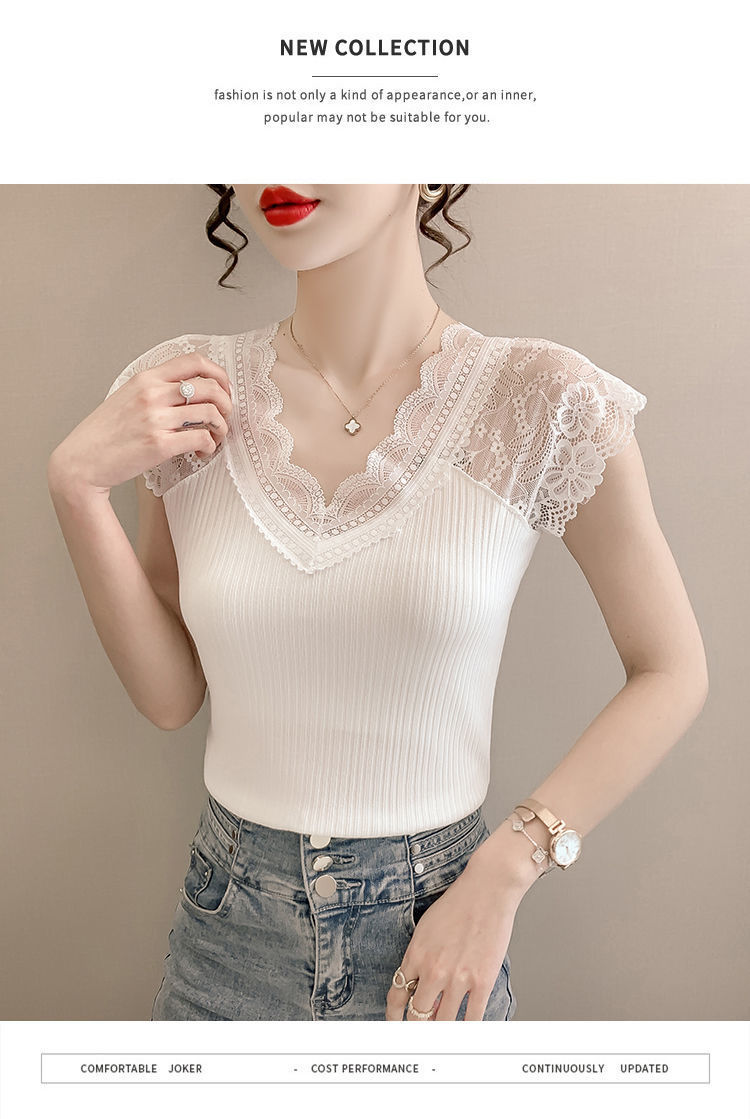 레이스 이너 레이스업 탱크탑 여성용 빅사이즈 다용도 브이넥 신축성 슬림핏 이너웨어 티셔츠 여름 슬림핏 타이트핏스토어 가기