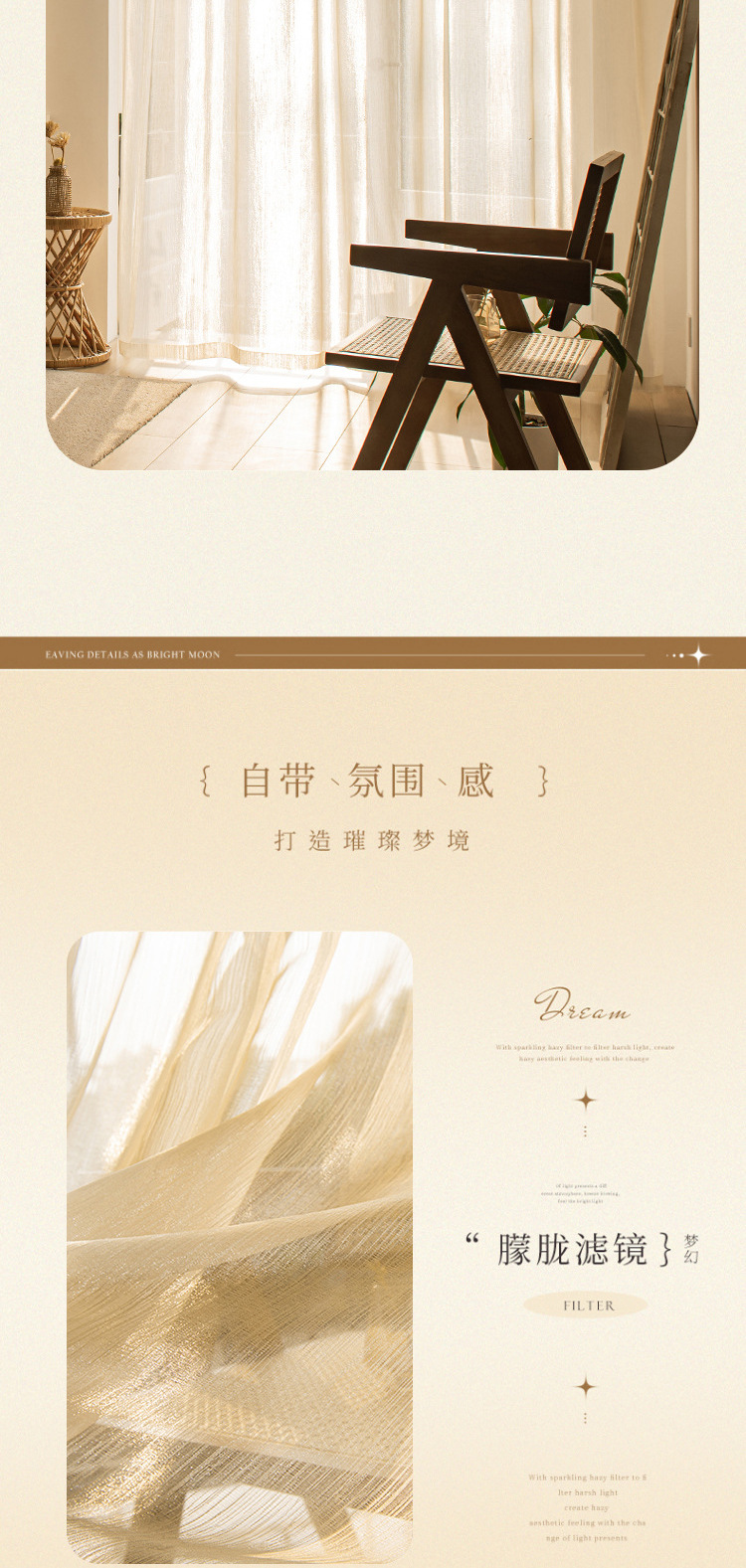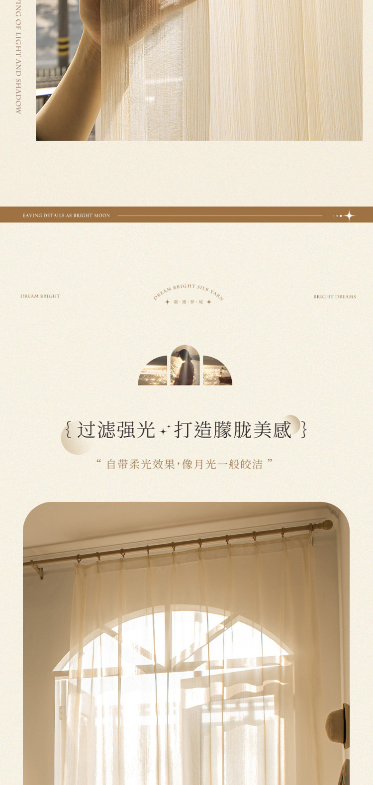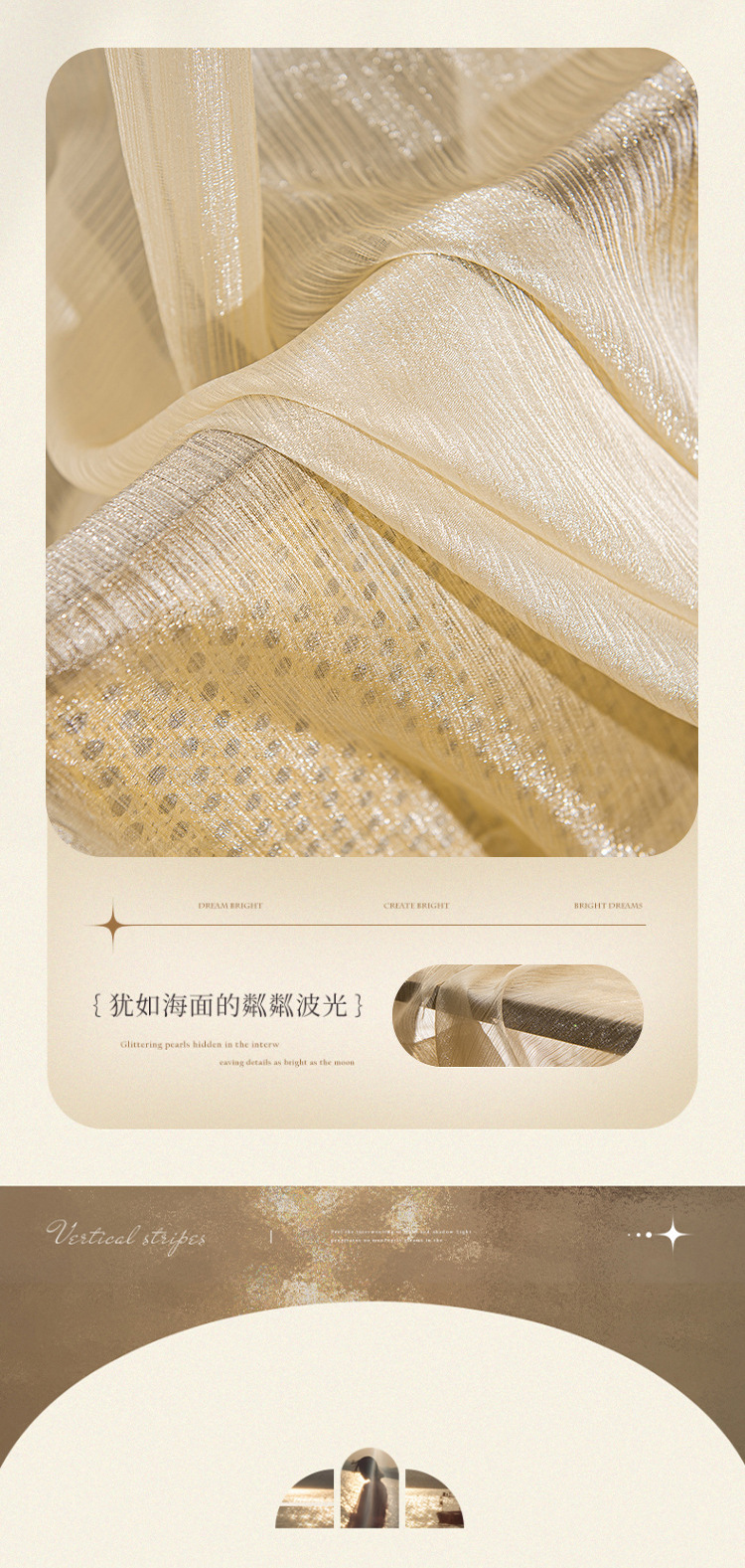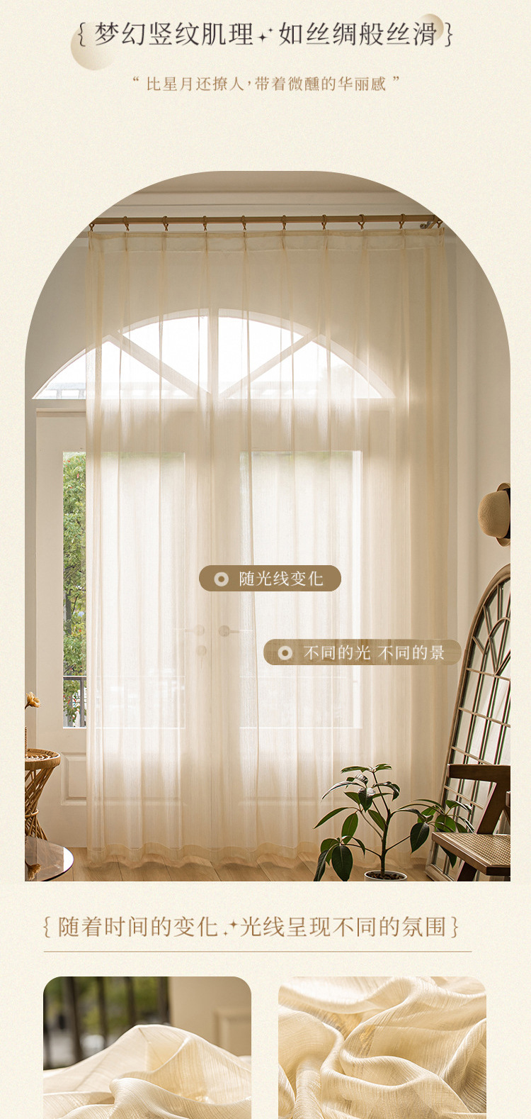 금사가 들어간 고급스러운 프렌치 스타일의 브라이트 화이트 커튼 원단, 반투명한 금사가 있는 쉬어 커튼, 소흥 커튼 도매스토어 가기