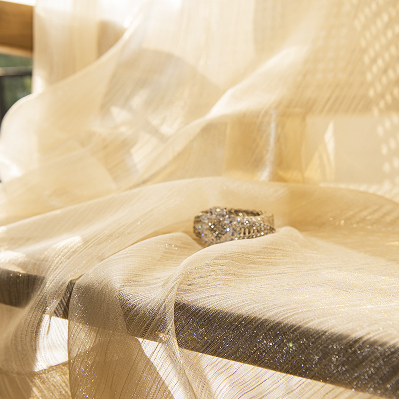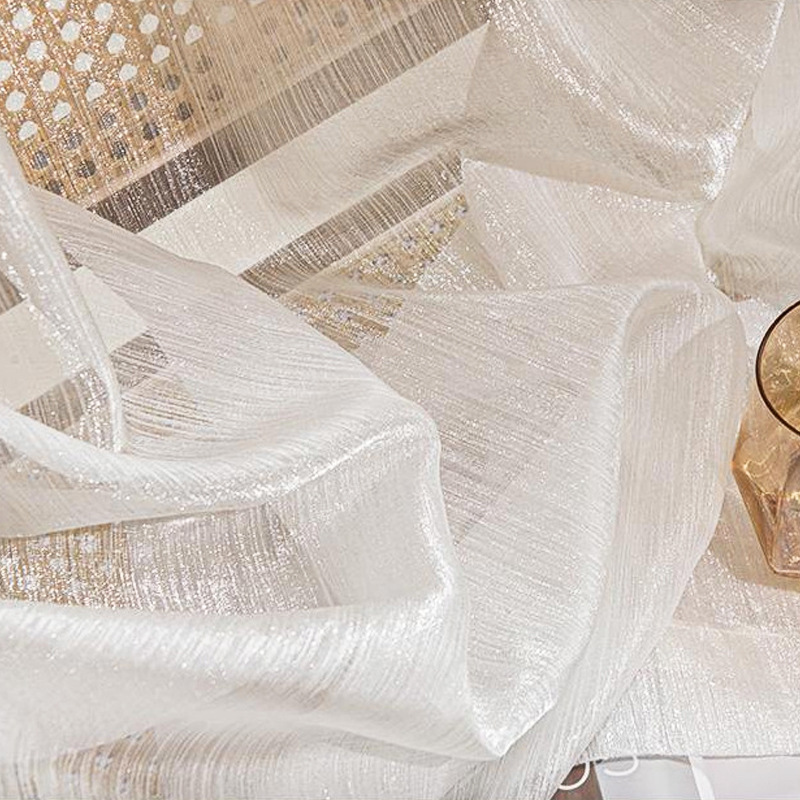 금사가 들어간 고급스러운 프렌치 스타일의 브라이트 화이트 커튼 원단, 반투명한 금사가 있는 쉬어 커튼, 소흥 커튼 도매