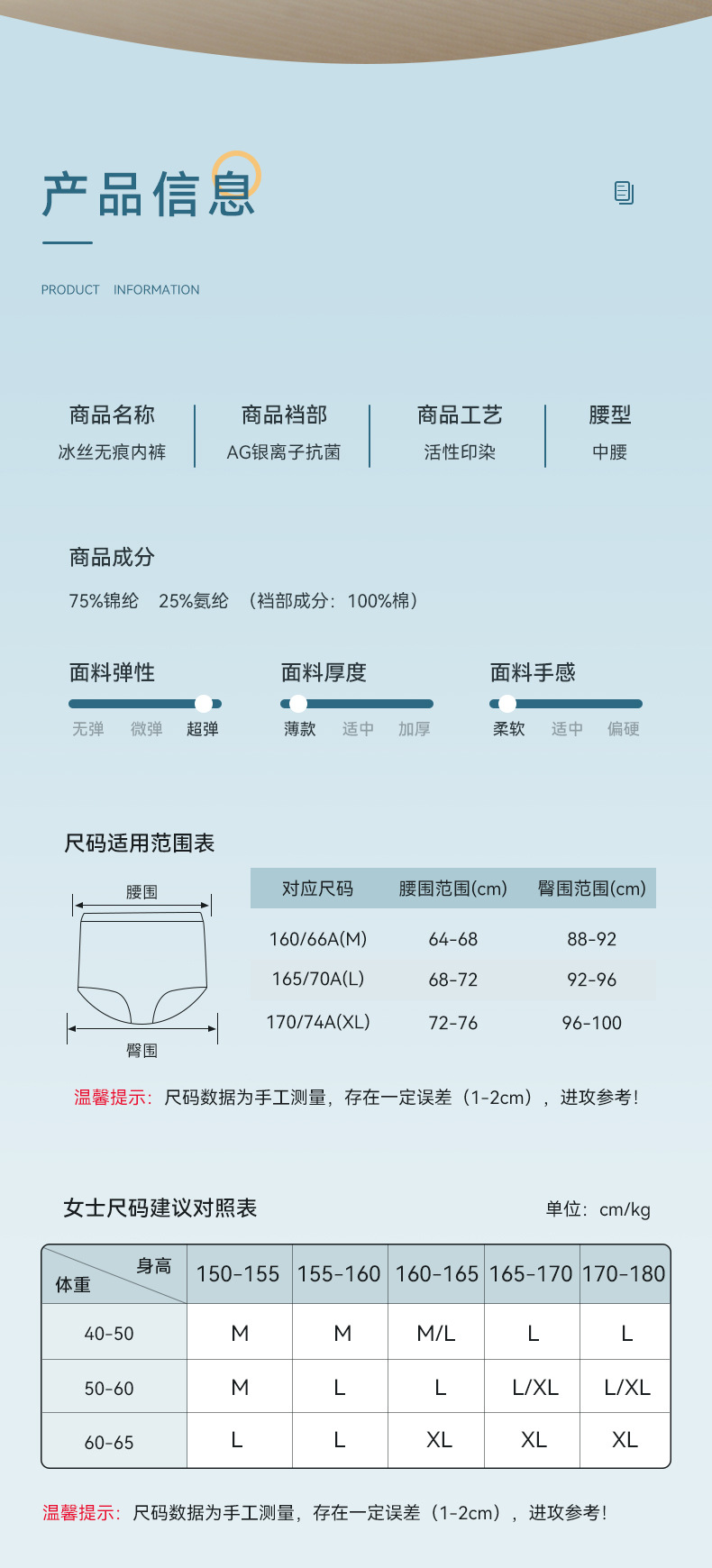 아이스 실크 속옷 숙녀 원활한 중간 허리 소녀 원시 면화 항균 가랑이 통기성 플러스 사이즈 섹시한 엉덩이 반바지