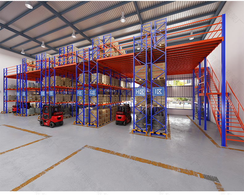 맞춤형 통합 다락방 플랫폼 대형 팔레트 고급 스토리지로 2 층 산업용 클라우드 창고 빔 선반 구축