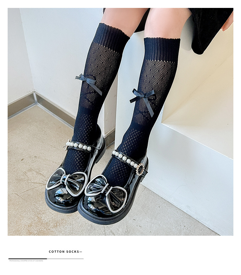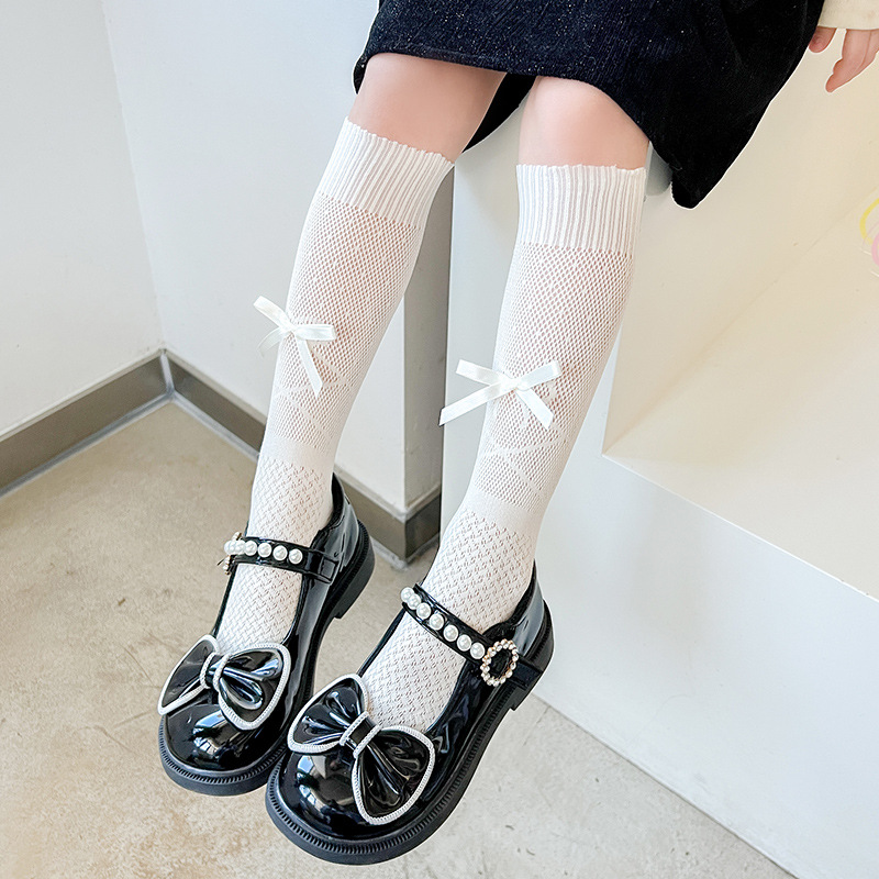 어린이 긴 양말 큰 활 여름 얇은 아기 높은 허리 얕은 양말 메쉬 통기성 소녀 스택 양말스토어 가기