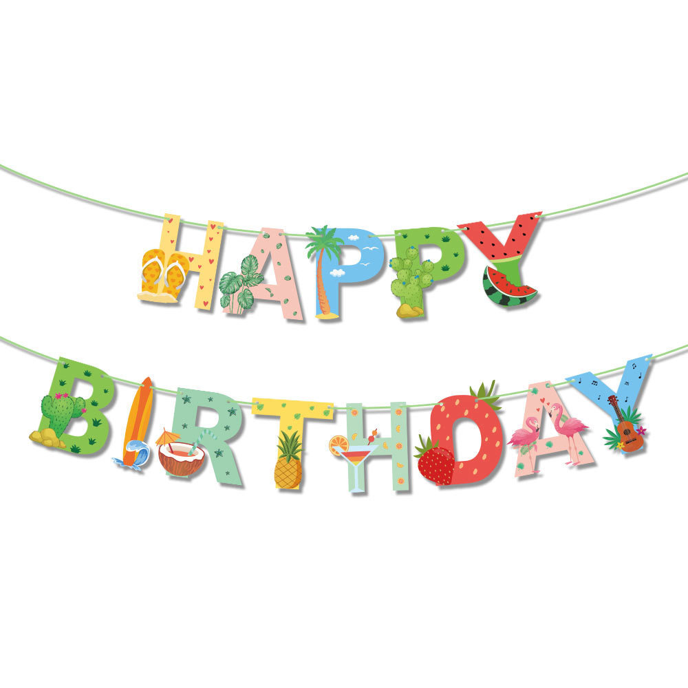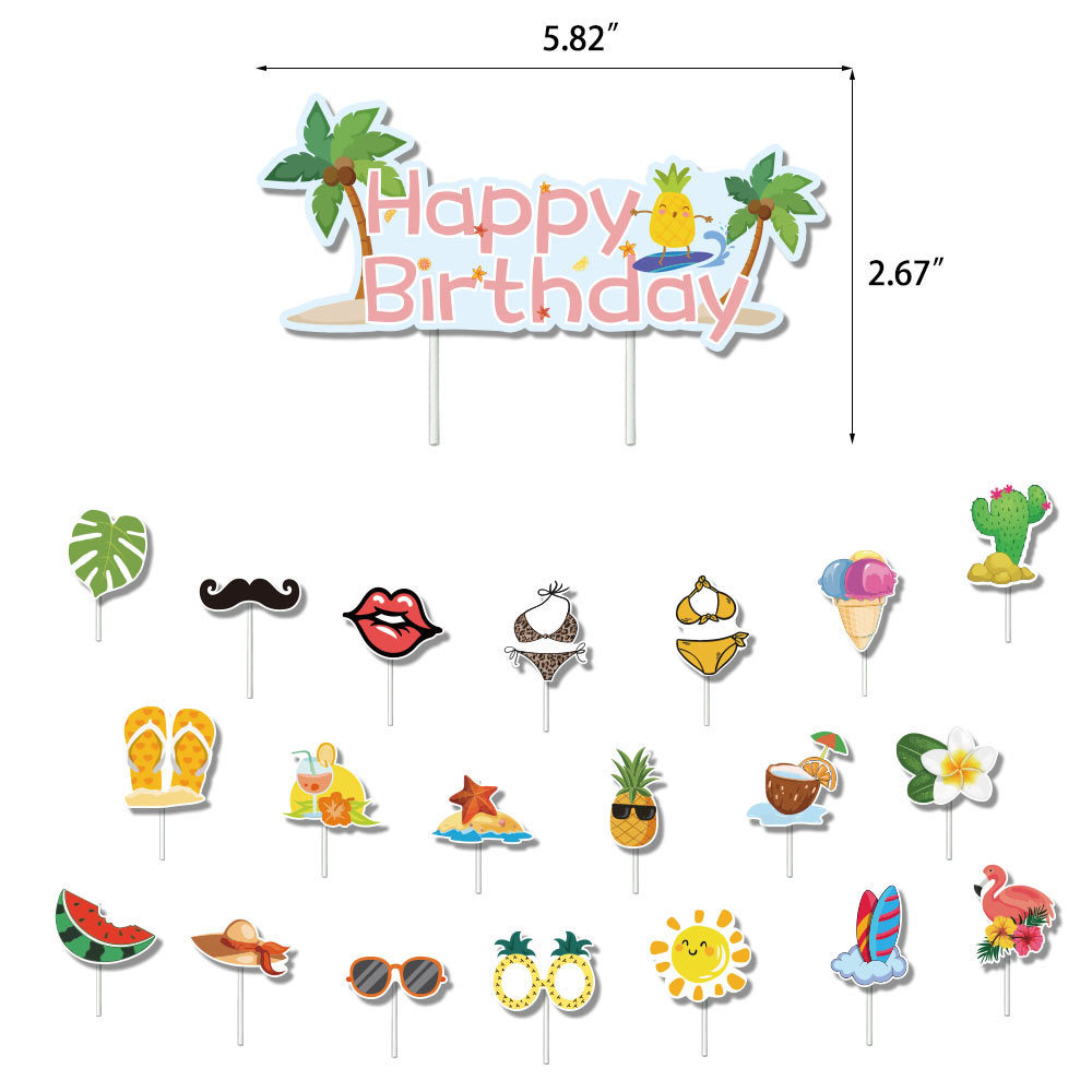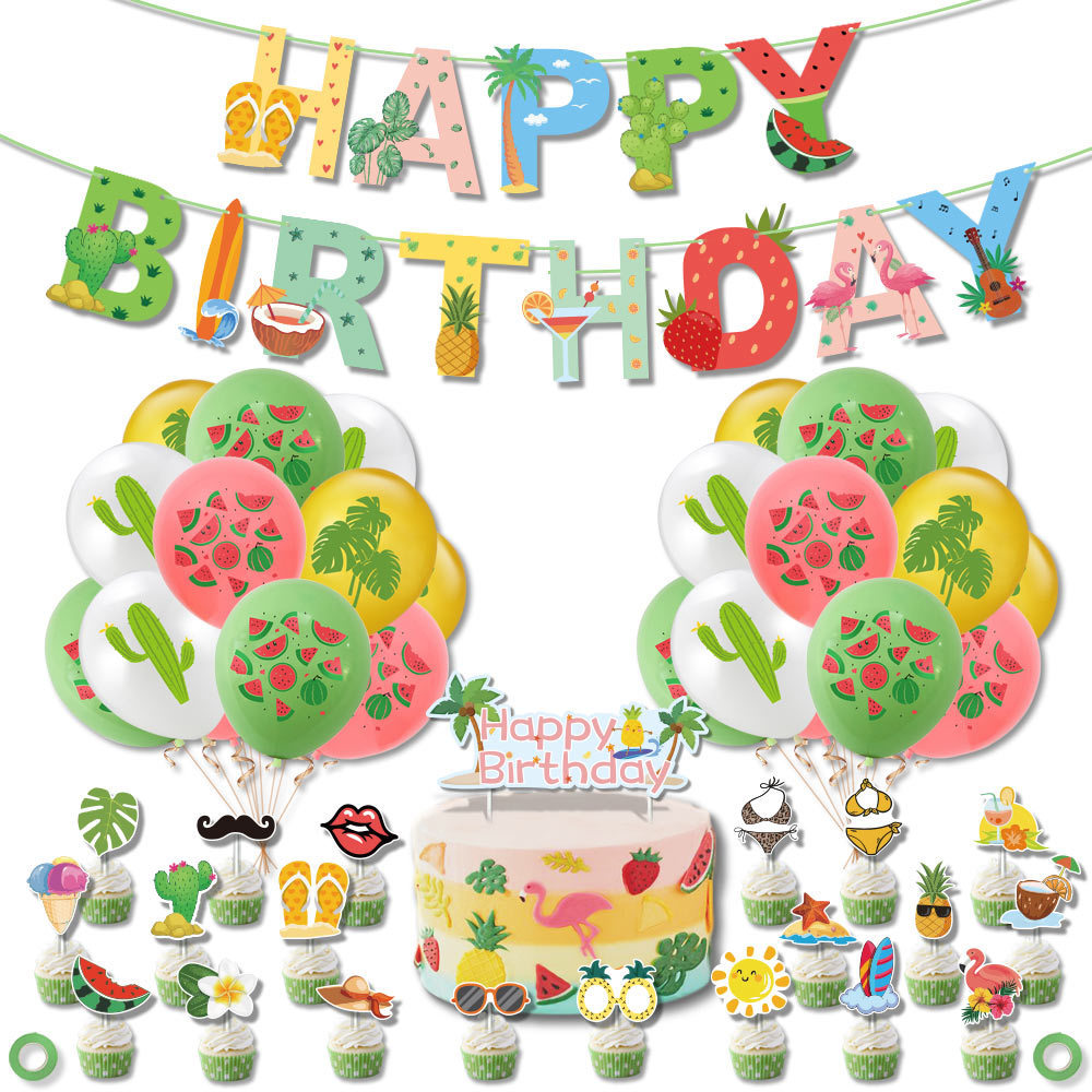 하와이 테마 배너 깃발 수박 파인애플 선인장 케이크 깃발 생일 파티 장식 용품