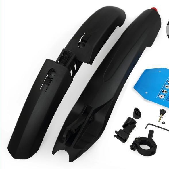 特点:产后采用简易快拆设计,拆卸简单方便稳固前后尾端采用橡胶弧形设  计,挡水挡泥效果,普遍适合前叉内有孔山地车,特别是山地车。少数  叉孔过大的自行车可自行配个内胎片货橡胶片点入,是安装更加稳固,尾部LEF尾  灯设计,为你夜晚骑行的提供一份保障。