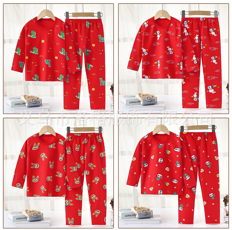 2024 년 새 어린이 빅 레드 소년과 소녀 가을 옷과 바지 세트 속옷 아기 따뜻한 옷스토어 가기