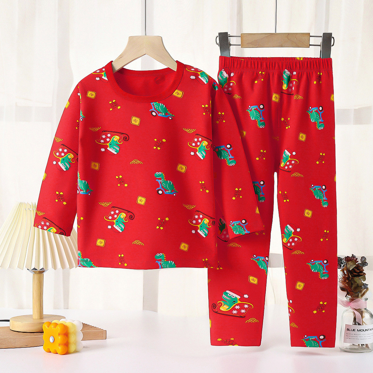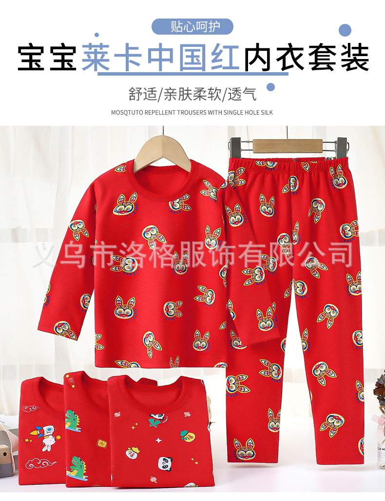 2024 년 새 어린이 빅 레드 소년과 소녀 가을 옷과 바지 세트 속옷 아기 따뜻한 옷