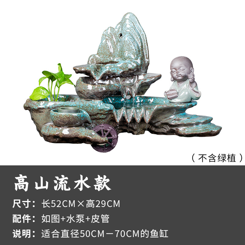 세라믹 어항 가정용 발코니 세라믹 자동 물 물고기 분수 폭포 실내 물 탱크 가정용 안뜰스토어 가기
