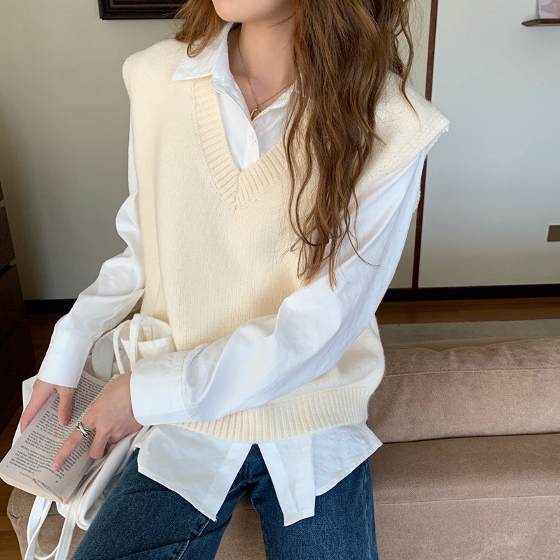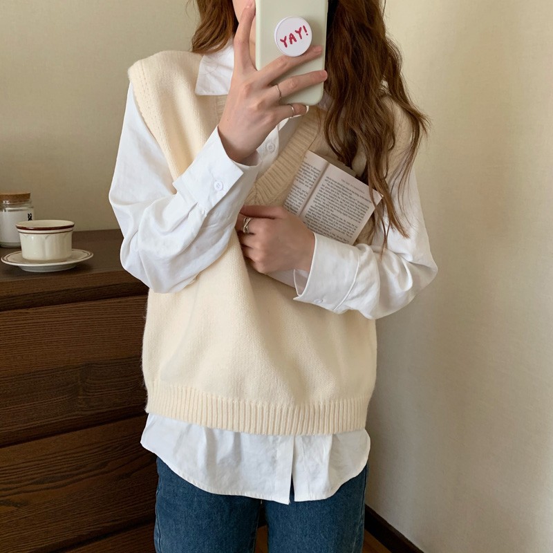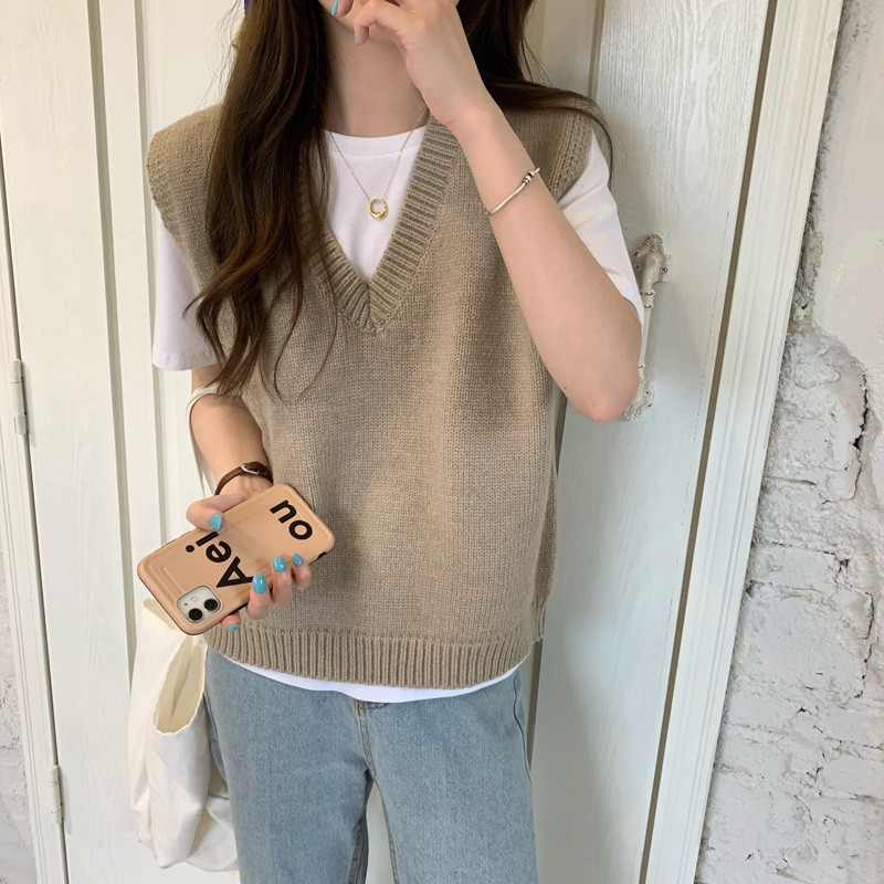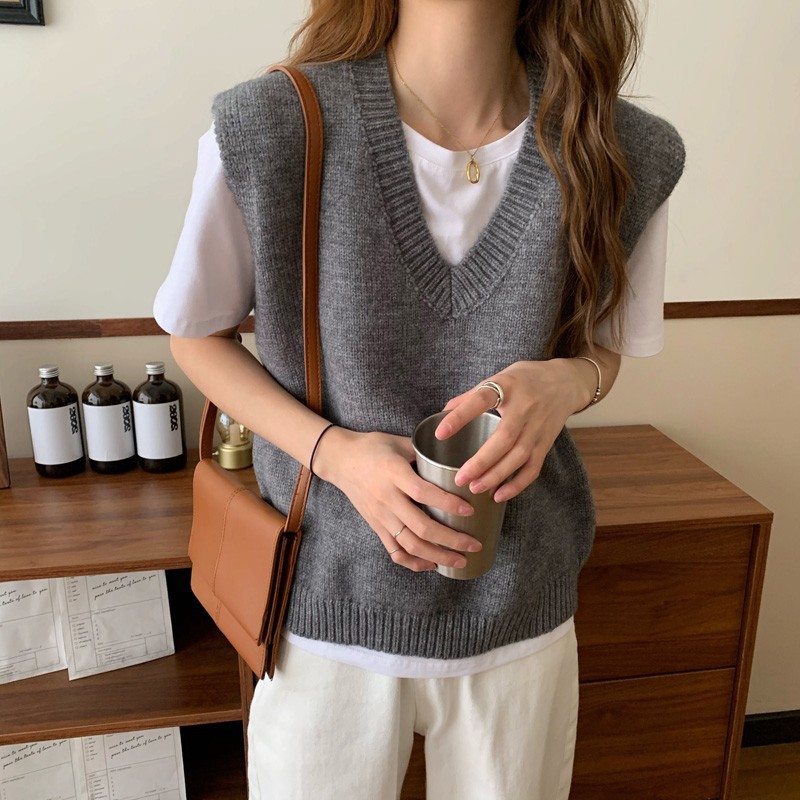 얼굴을 보여주는 작은 가을 쌓기 아티팩트 봄과 여름 순수 울 니트 조끼 여성 V-넥 캐시미어 조끼 간단한 겉옷을 입고스토어 가기