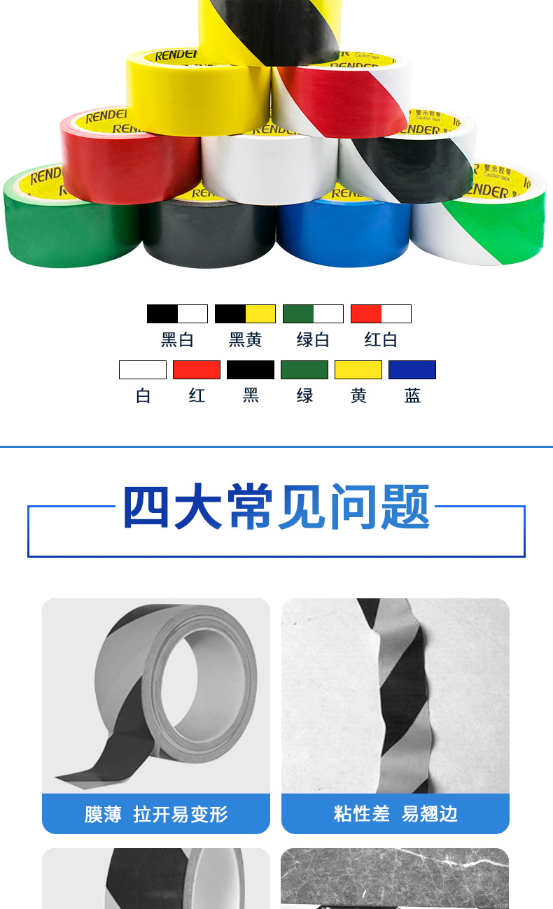 흑백 로고 트윌 플로어 테이프 10cm/4.8X18y 컬러 내마모성 얼룩말 테이프 옐로우와 블랙 경고 테이프스토어 가기