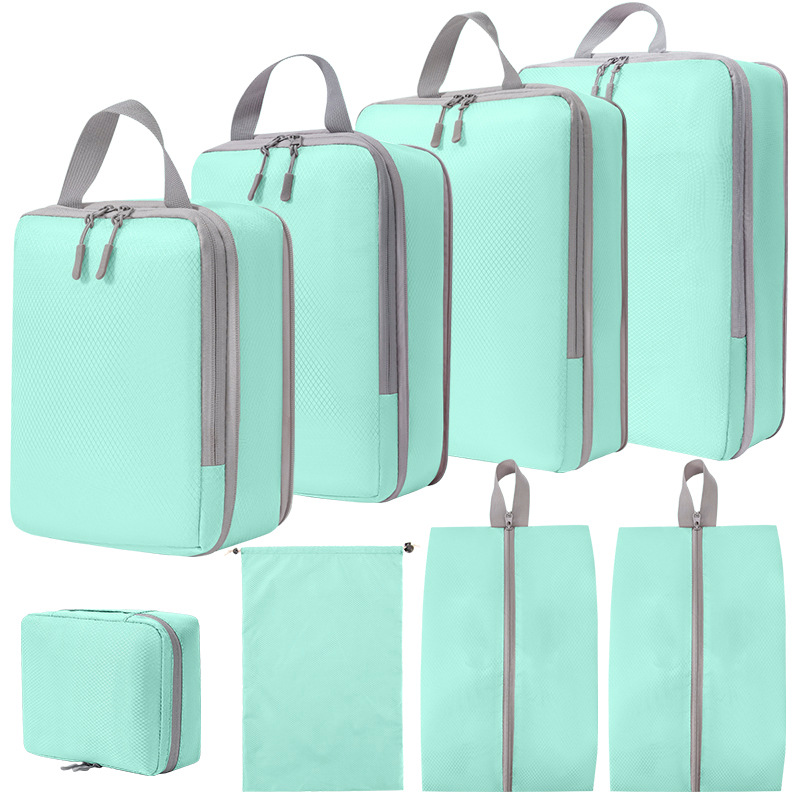 • 압축 8 피스 레이크 블루 (신발 가방 + 번들 포켓 + 워시 백 + 플랫 포켓)