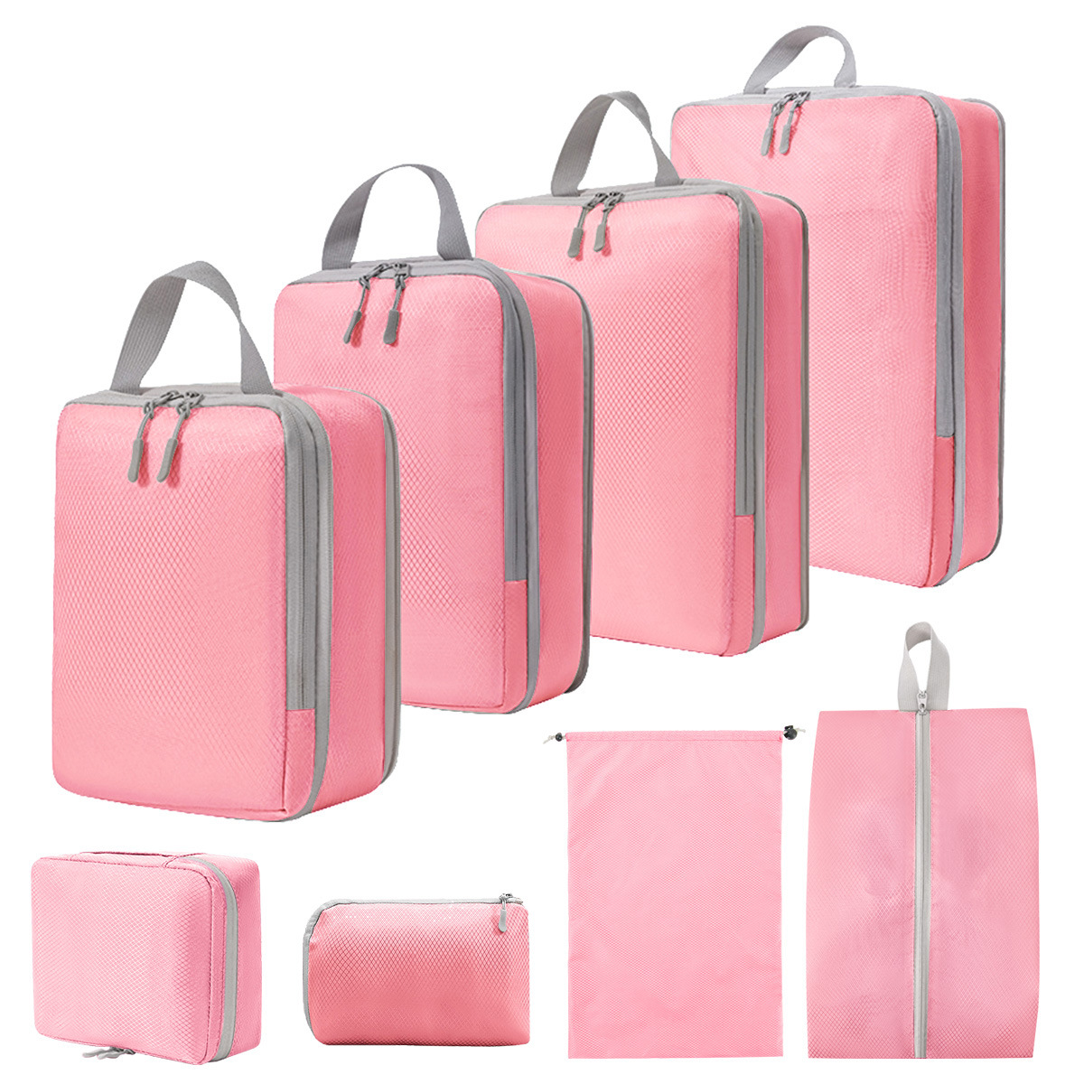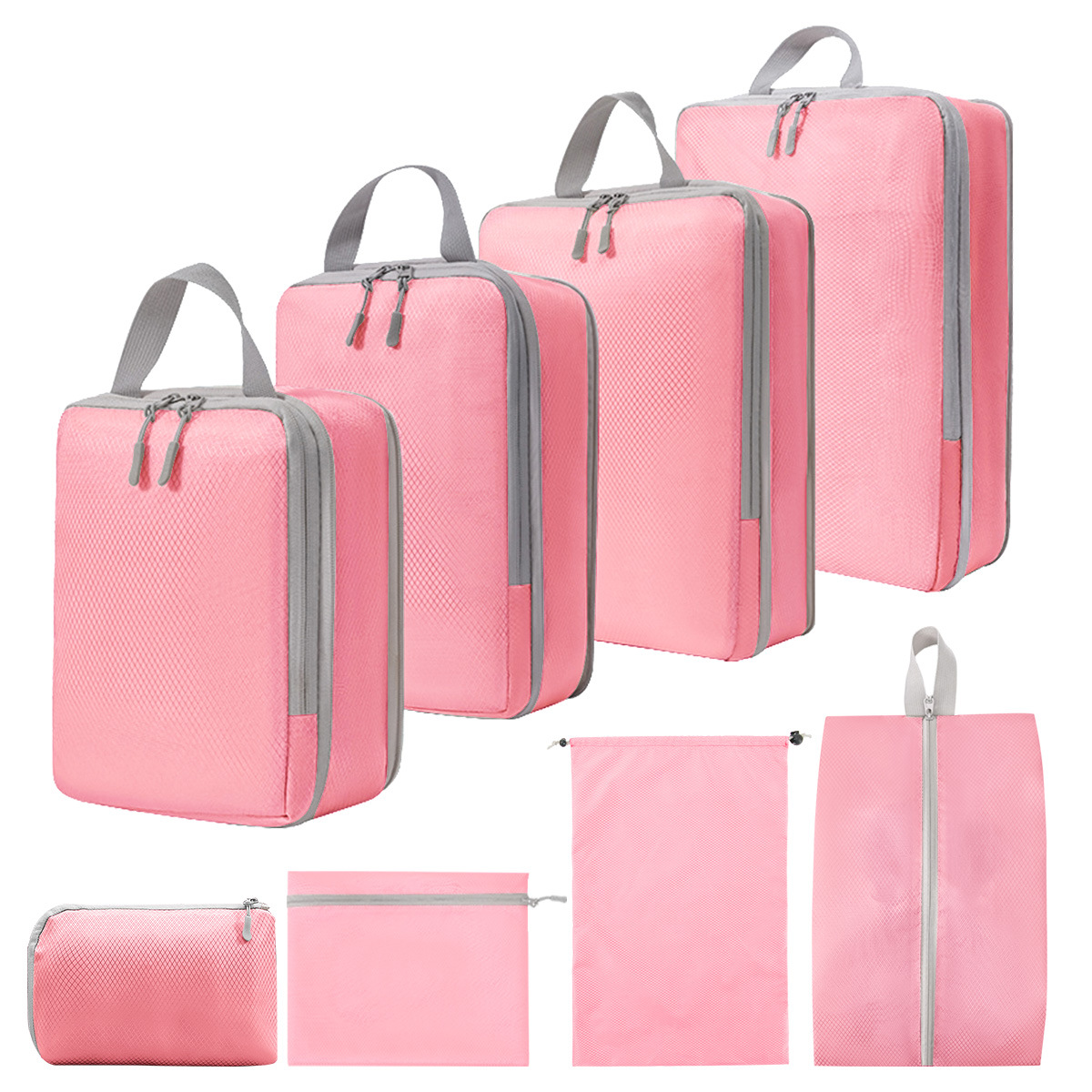 • 압축 8 피스 세트 핑크 (신발 가방 번들 포켓 워시 백 플랫 포켓 포켓 포켓)
