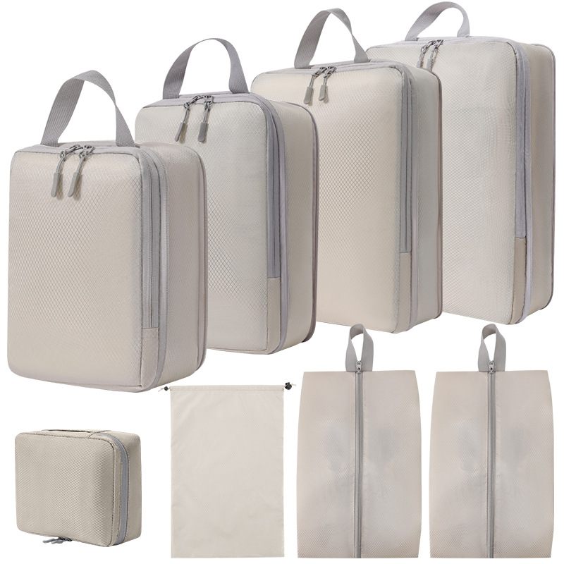 • 압축 7 종 세트 베이지 (신발 가방 + 번들 포켓 + 플랫 포켓)