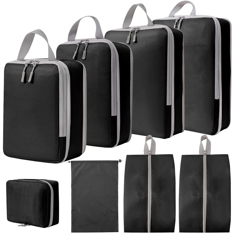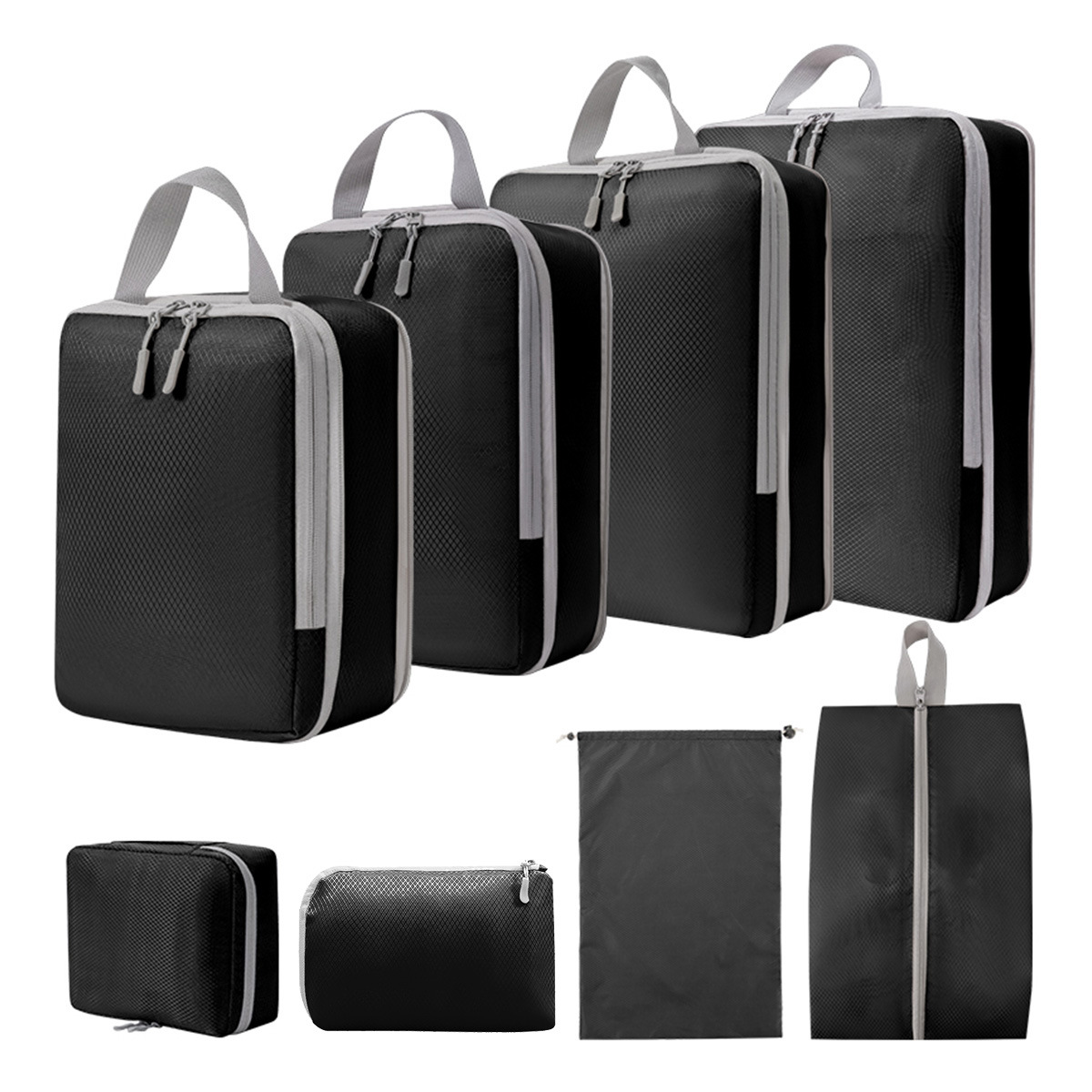 • 압축 7 종 세트 블랙 (신발 가방 + 번들 포켓 + 플랫 포켓)