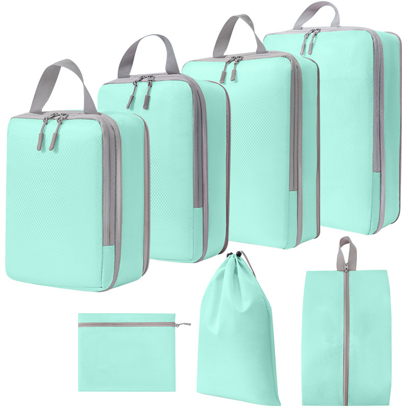 • 압축 7 피스 레이크 블루 (신발 가방 + 번들 포켓 + 플랫 포켓)