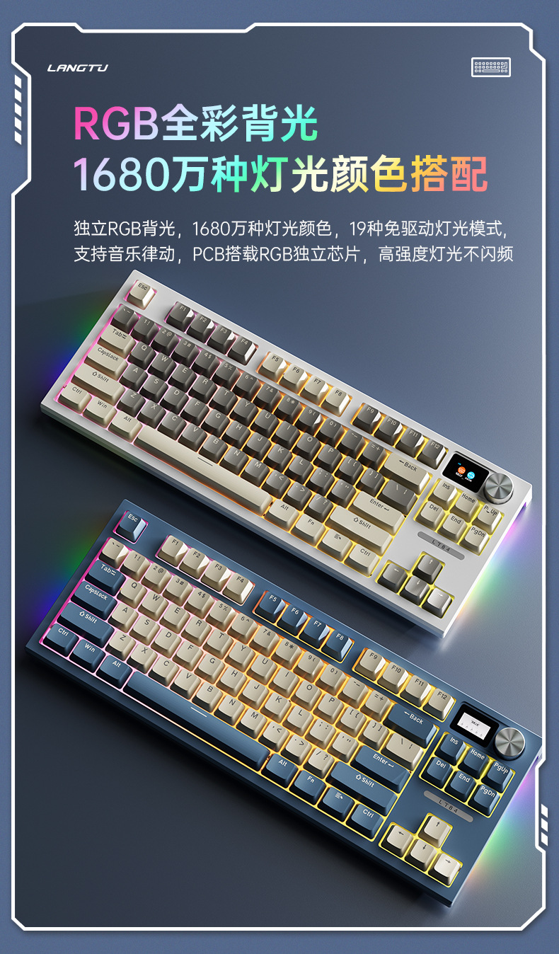 狼途LT84三模2.4G无线蓝牙机械键盘 客制化三模青轴电竞游戏键盘