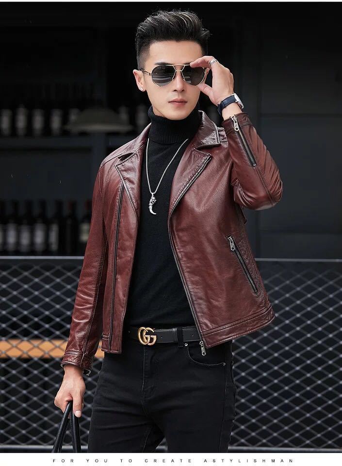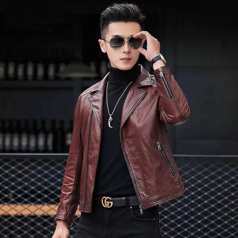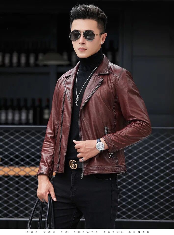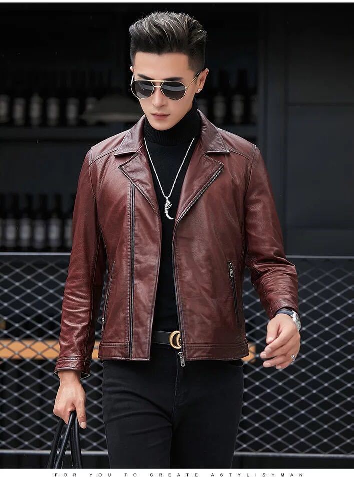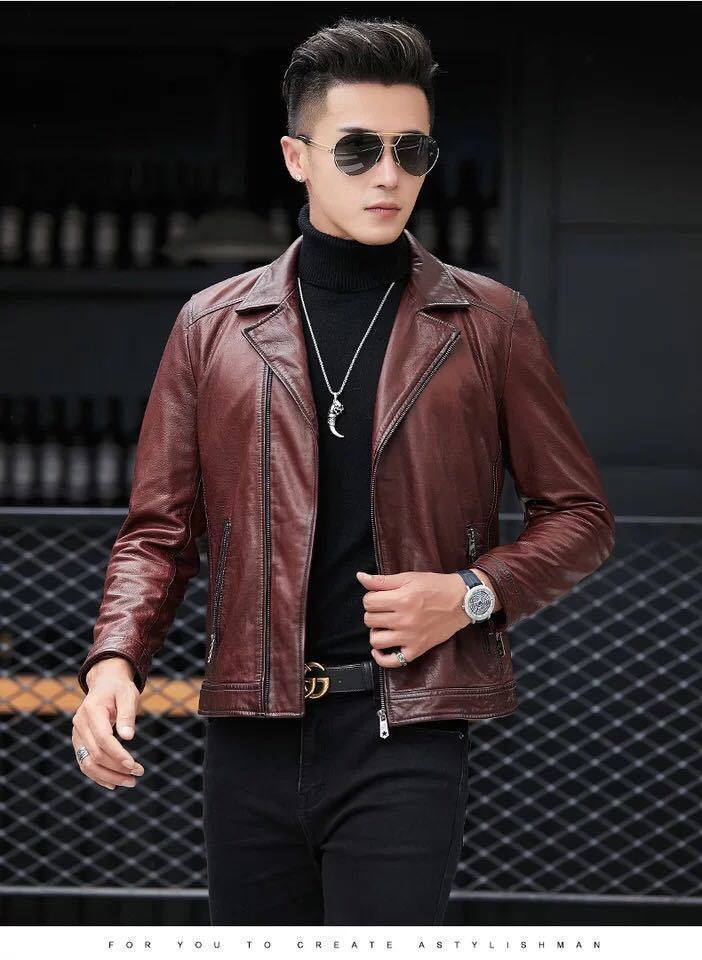 봄 가을 가죽 자켓 남성 신상 한국 스타일 슬림 핏 멋진 짧은 캐주얼 정장 칼라 가죽 자켓 남성용스토어 가기