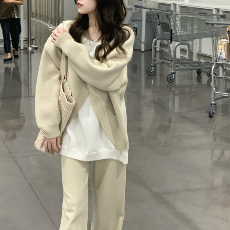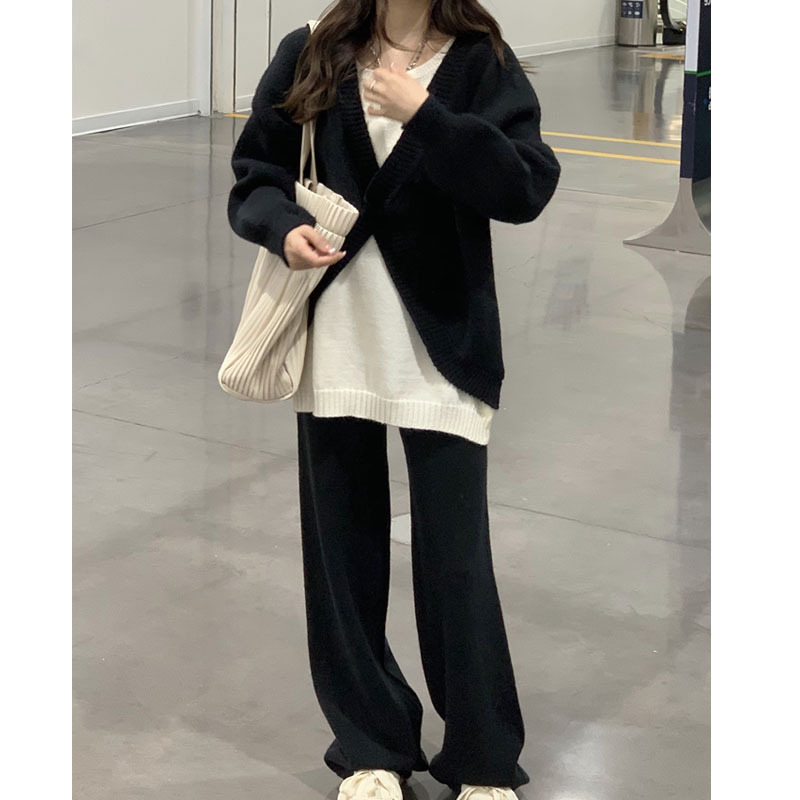 2023 봄 가을 우유 의류 세트 여성 의류 세트 한국식 틈새 우유 왁스 스타일 젠틀 게으른 스웨터 투피스 세트스토어 가기