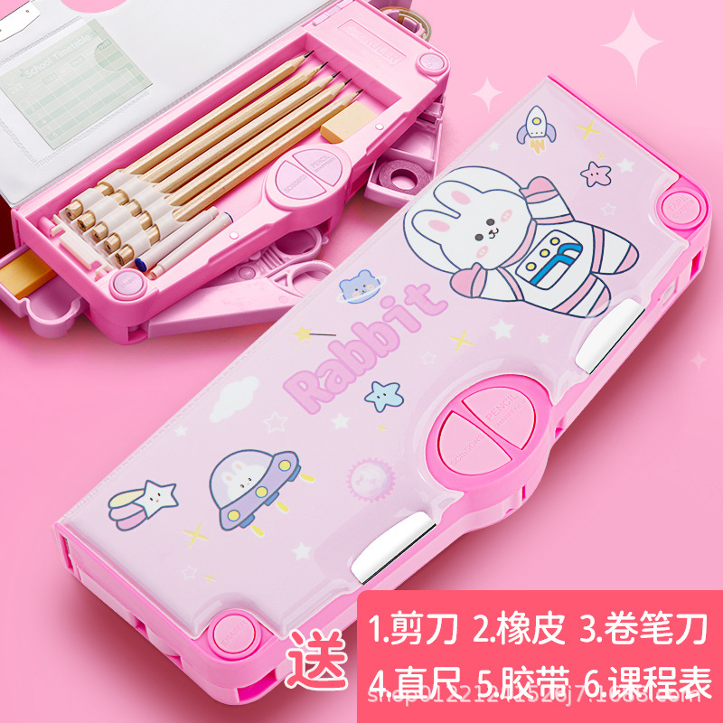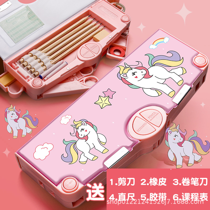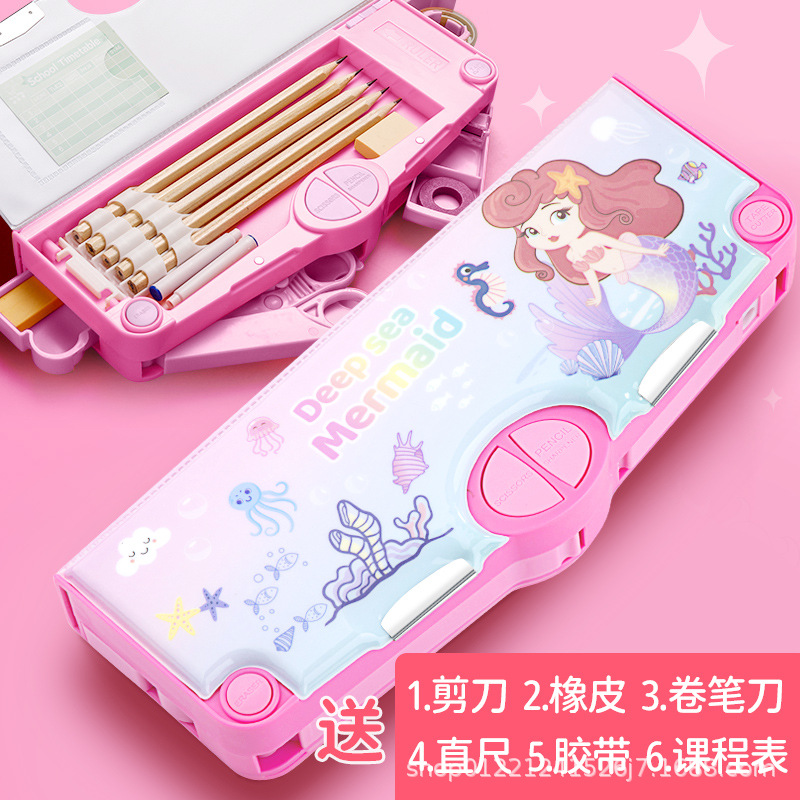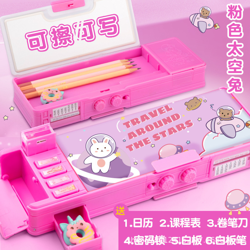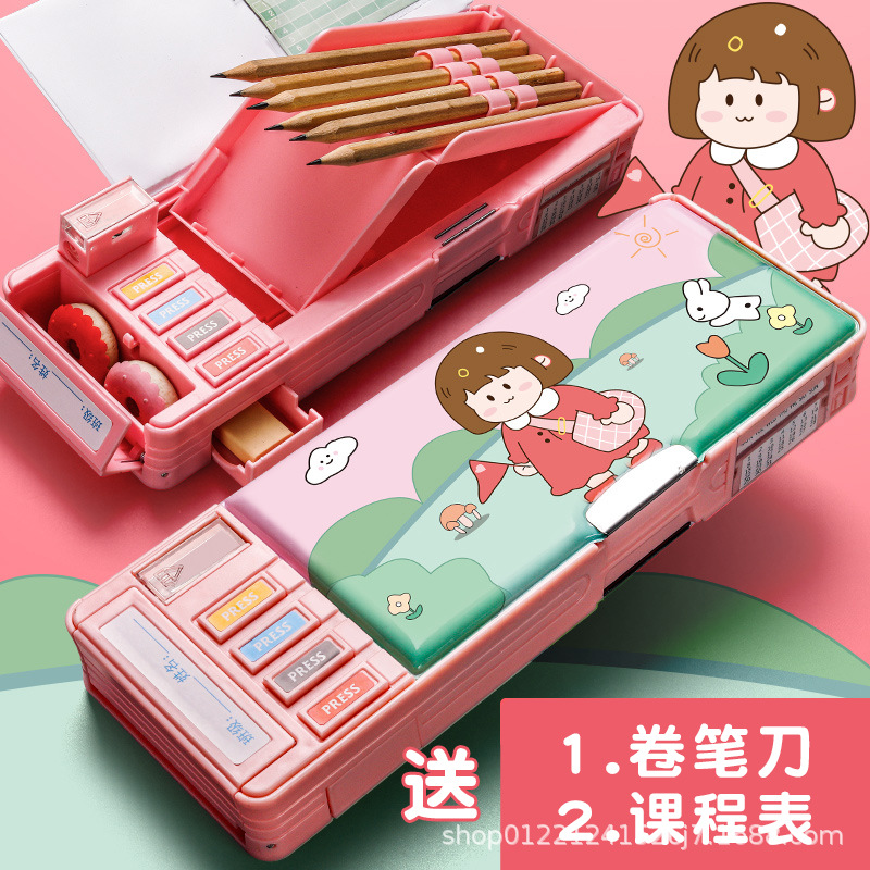 다기능 문구 상자 초등학교 소녀 높은 색상 가치 큰 용량 블랙 기술 연필 문구 저장 상자 도매스토어 가기