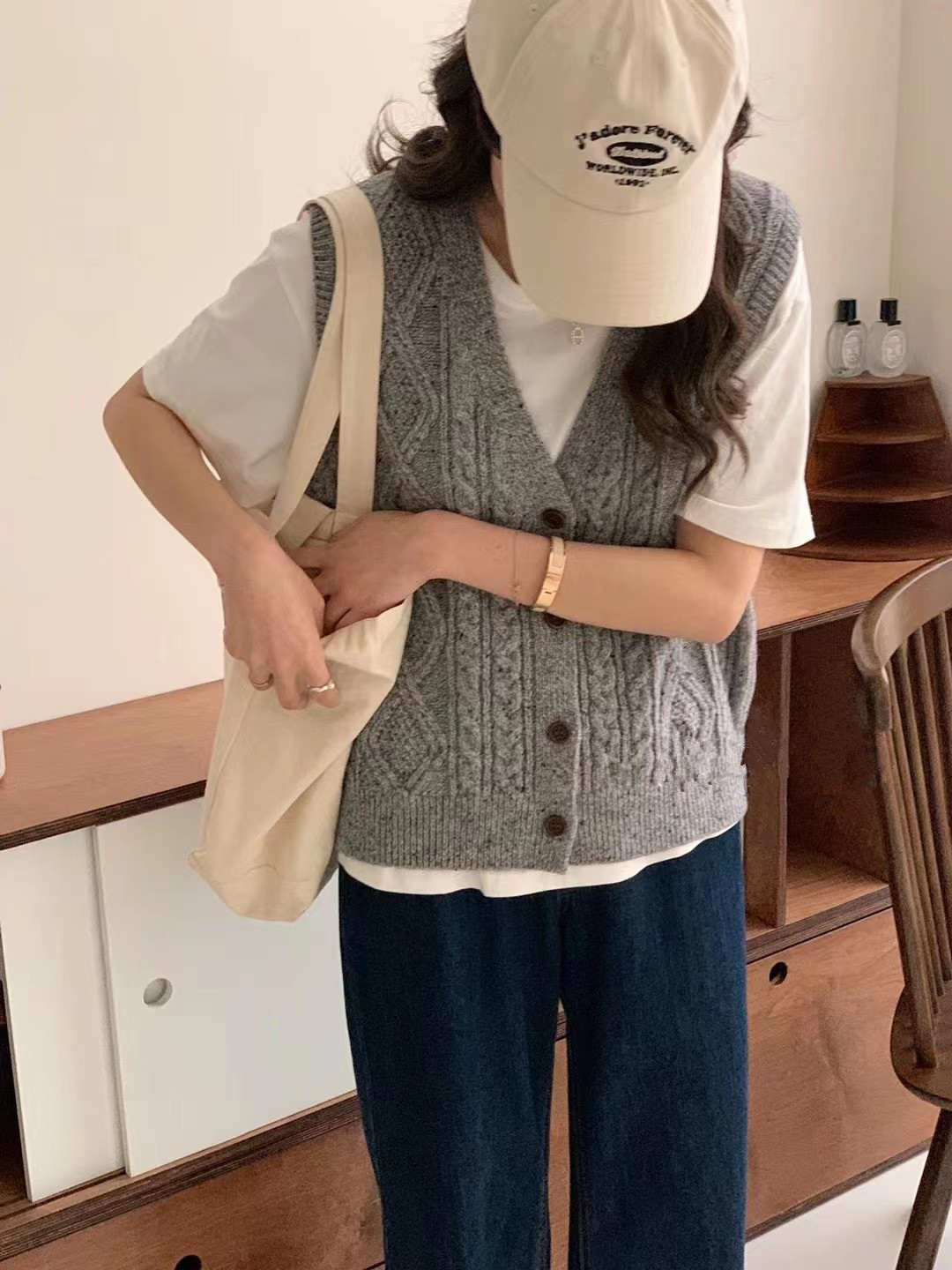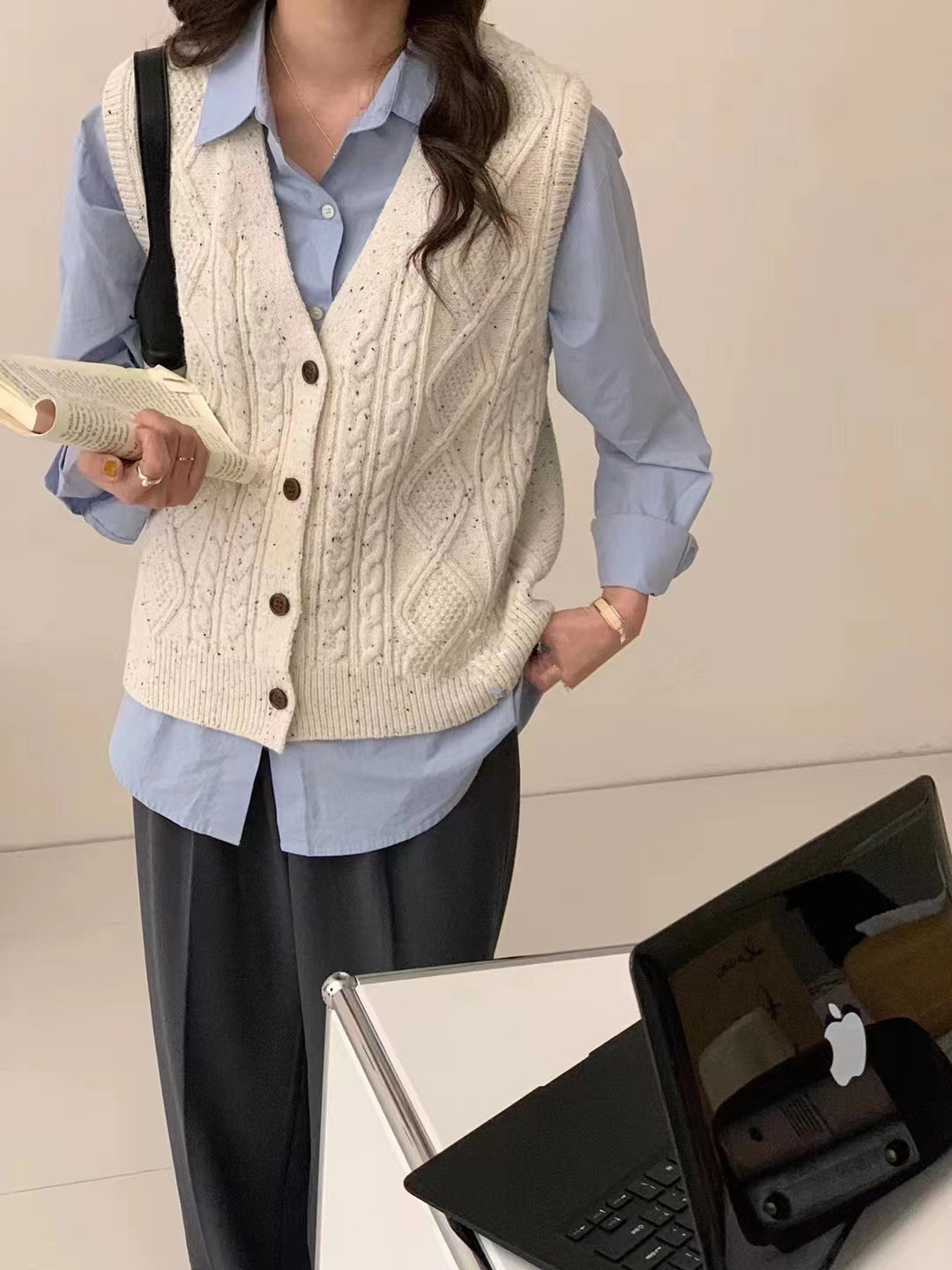 여성용 니트 가디건 조끼, 크로스보더 신상품, 도트무늬 얀사 레이어드 루즈핏 캐주얼 싱글버튼 탑