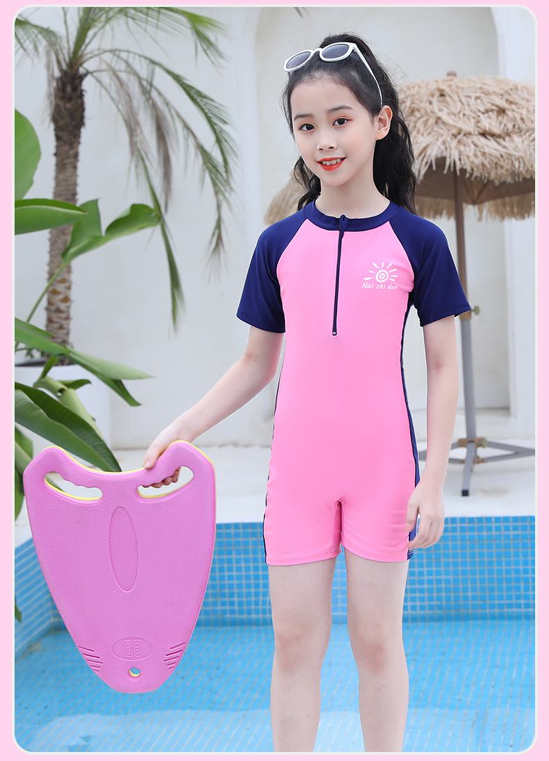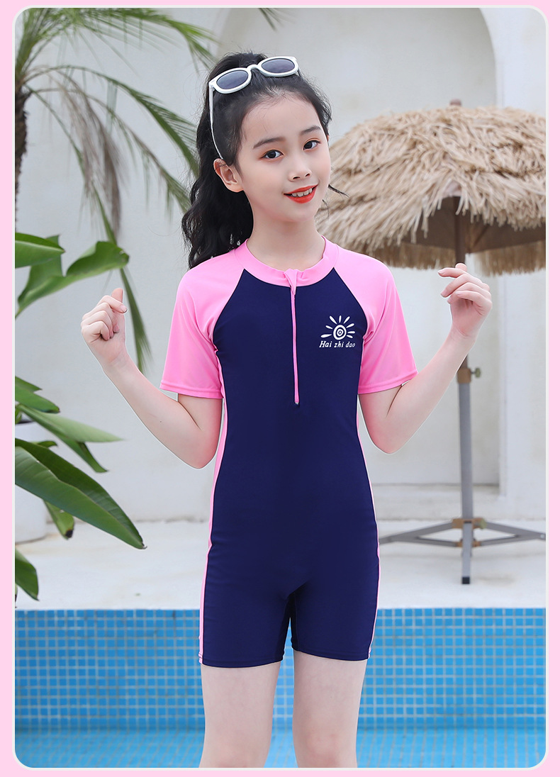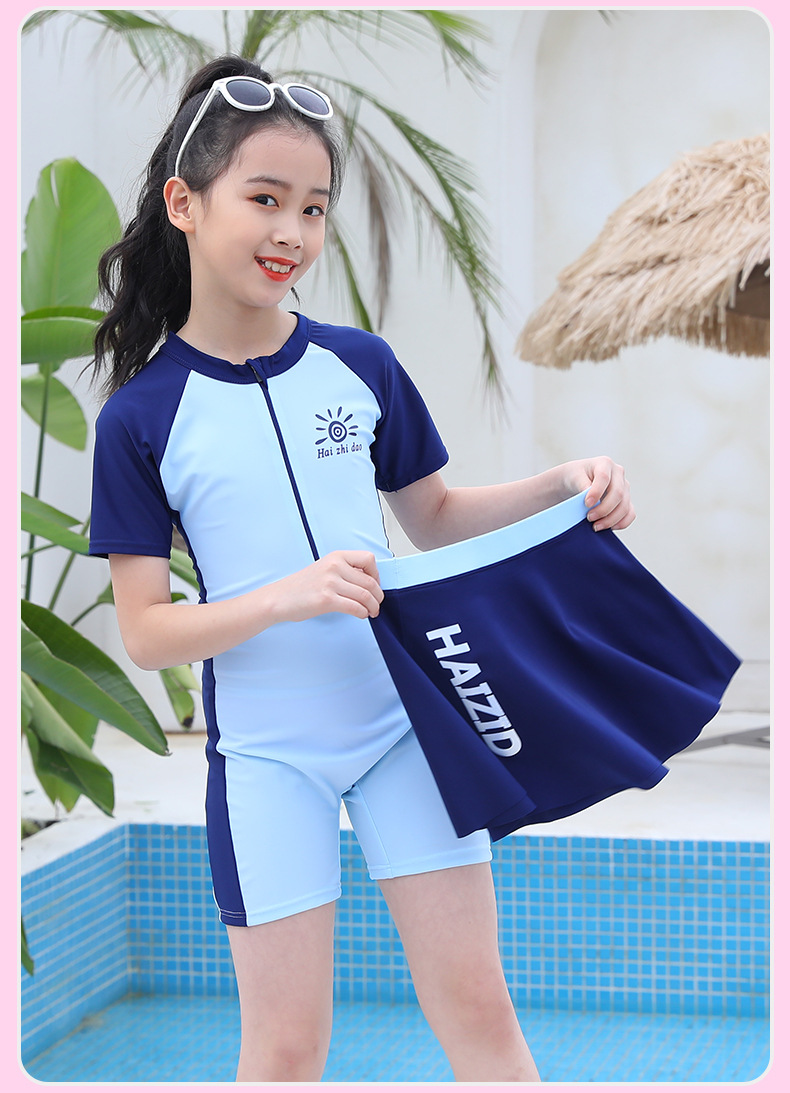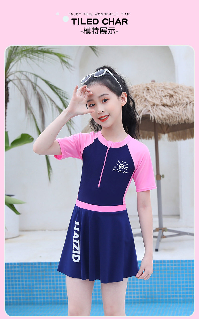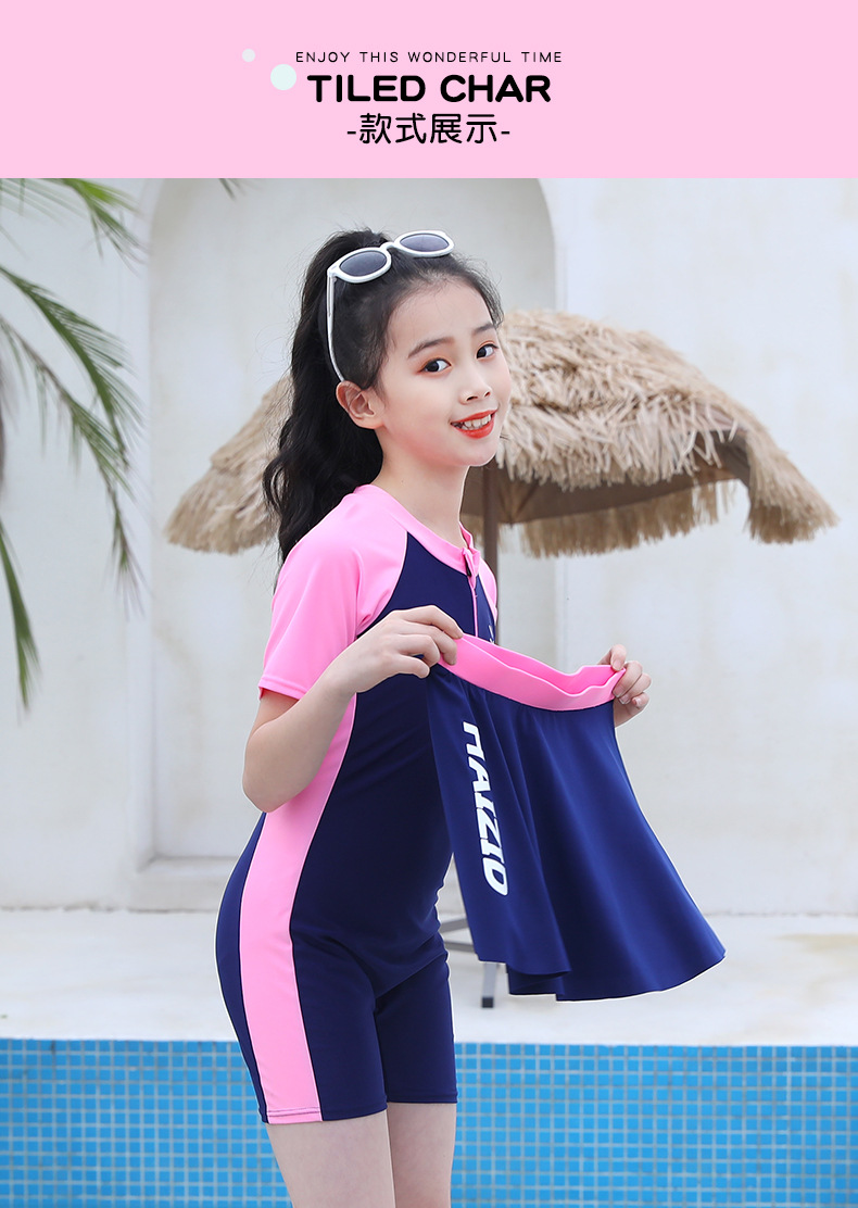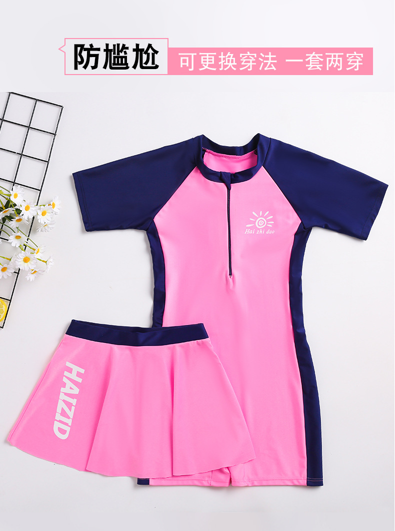 수영 훈련 세트 어린이 수영복 반팔 세트 중대형 어린이 당황 방지 여자 스커트 수영복 도매 소스
