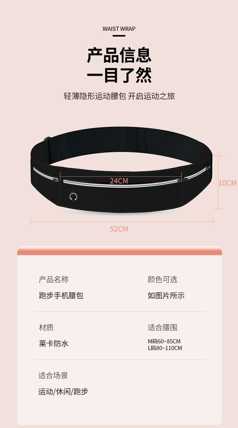 새로운 스포츠 허리 벨트 야외 달리기 피트니스 벨트 요가 보이지 않는 경량 허리 가방 밀착 벨트 장비