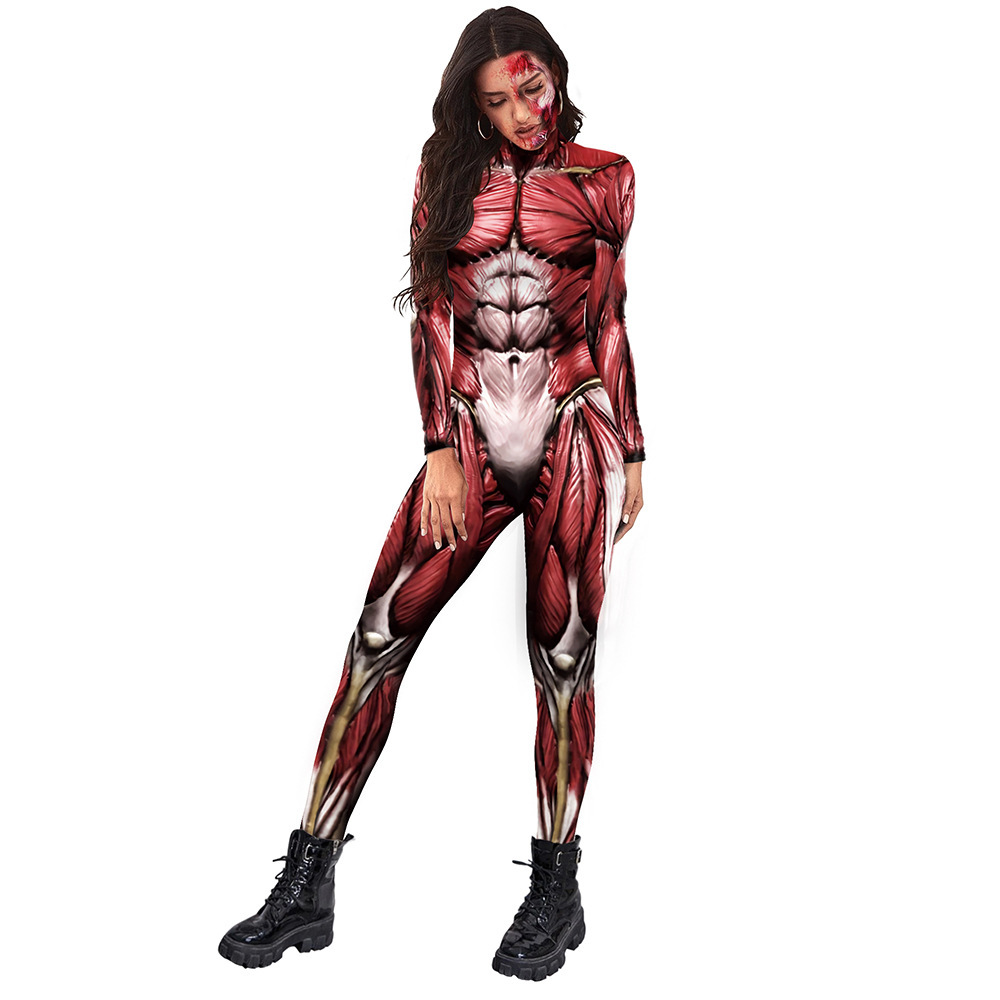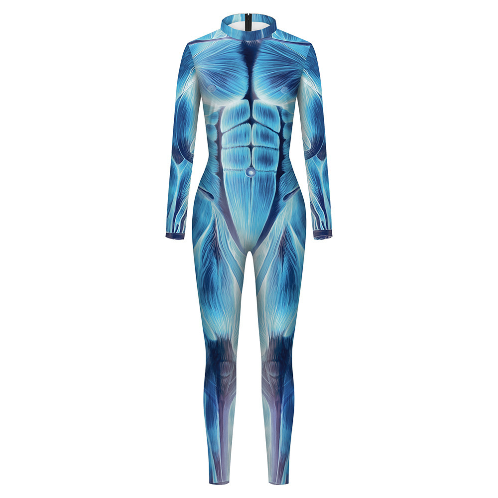 국경 간 뜨거운 판매 할로윈 근육 코스 무대 공연 의상 재미 의상 인쇄 바디 타이츠 남녀스토어 가기