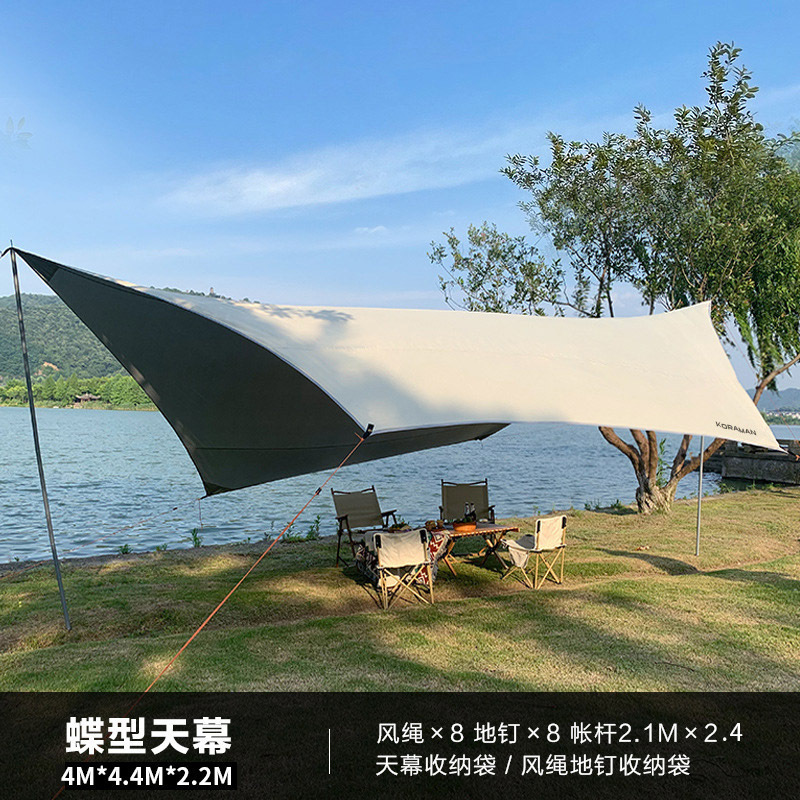 검은 고무 나비 캐노피 텐트 야외 캠핑 천막 휴대용 두꺼운 선 스크린 캐노피 캠핑 캐노피 장비