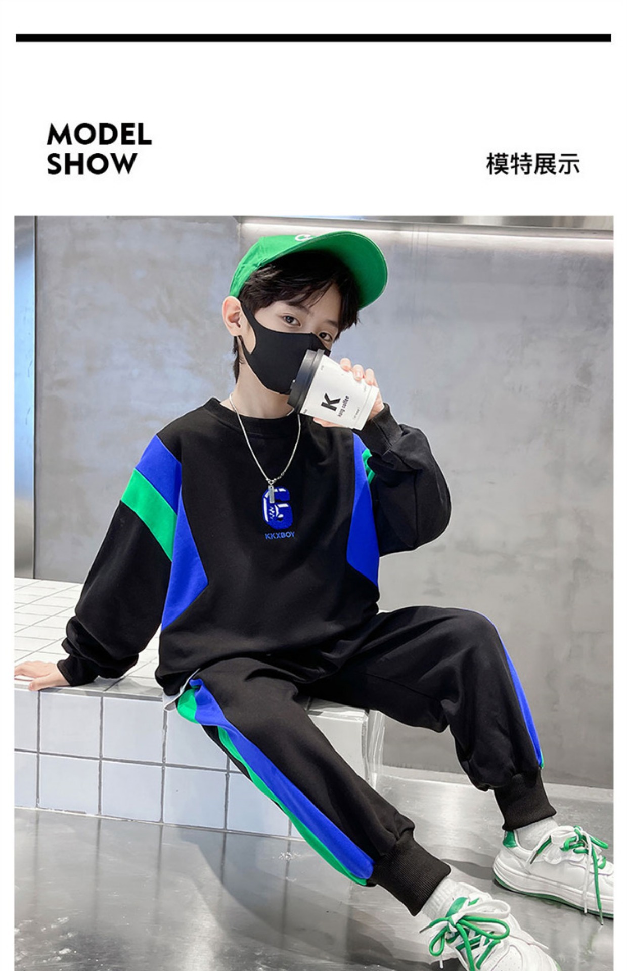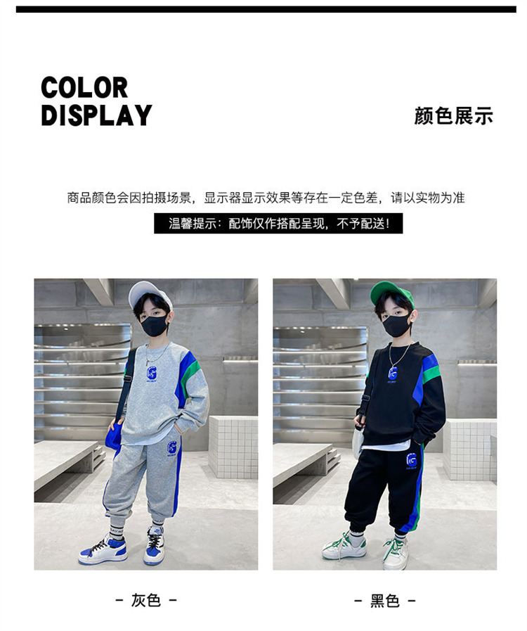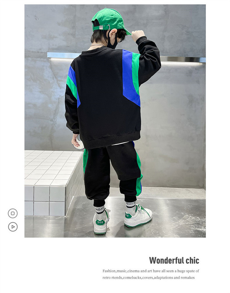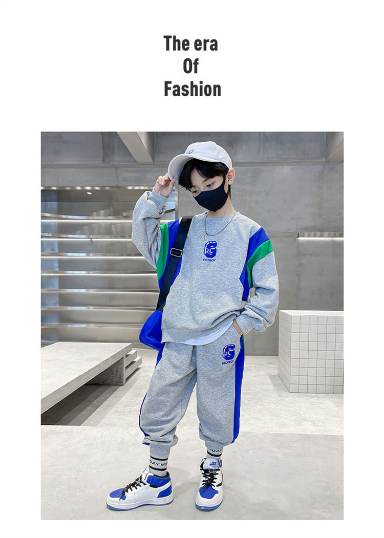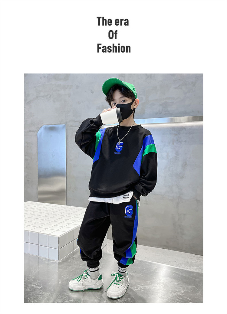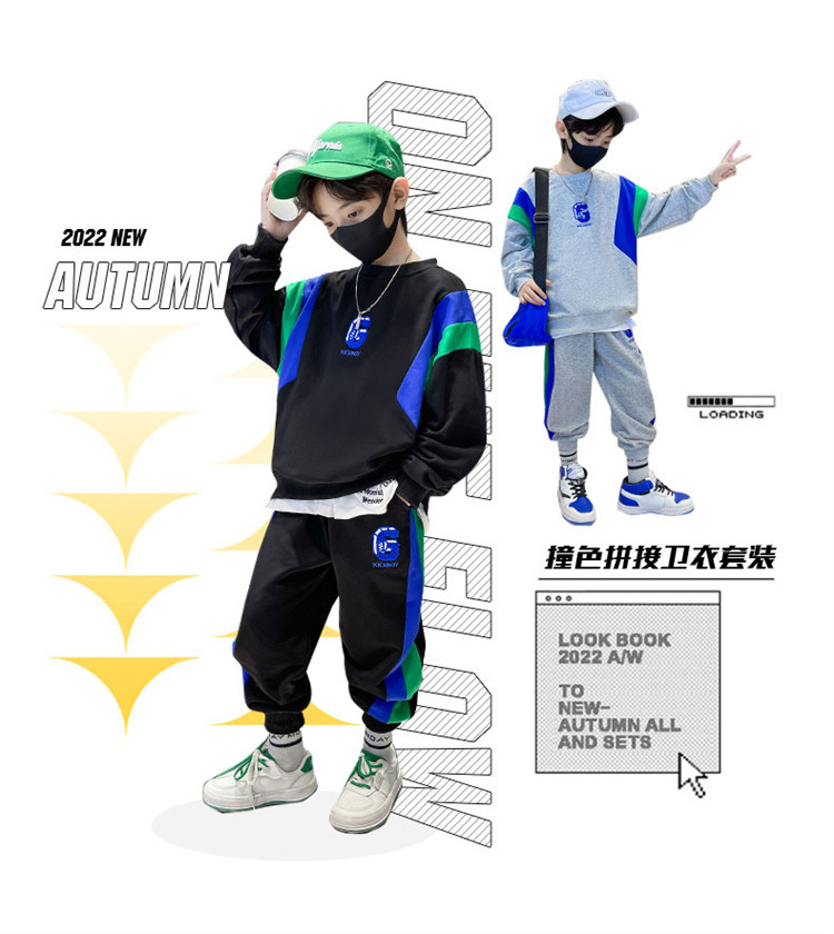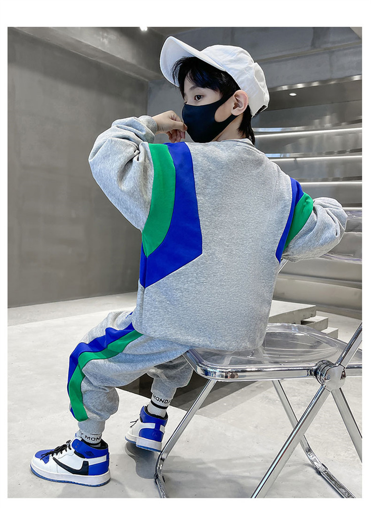 소년 스웨트 셔츠 세트 2024 봄과 가을 새로운 중대 어린이 서양식 봄 원피스 잘 생긴 거리 대비 캐주얼 투피스 세트스토어 가기