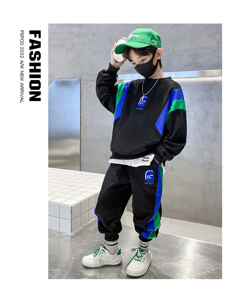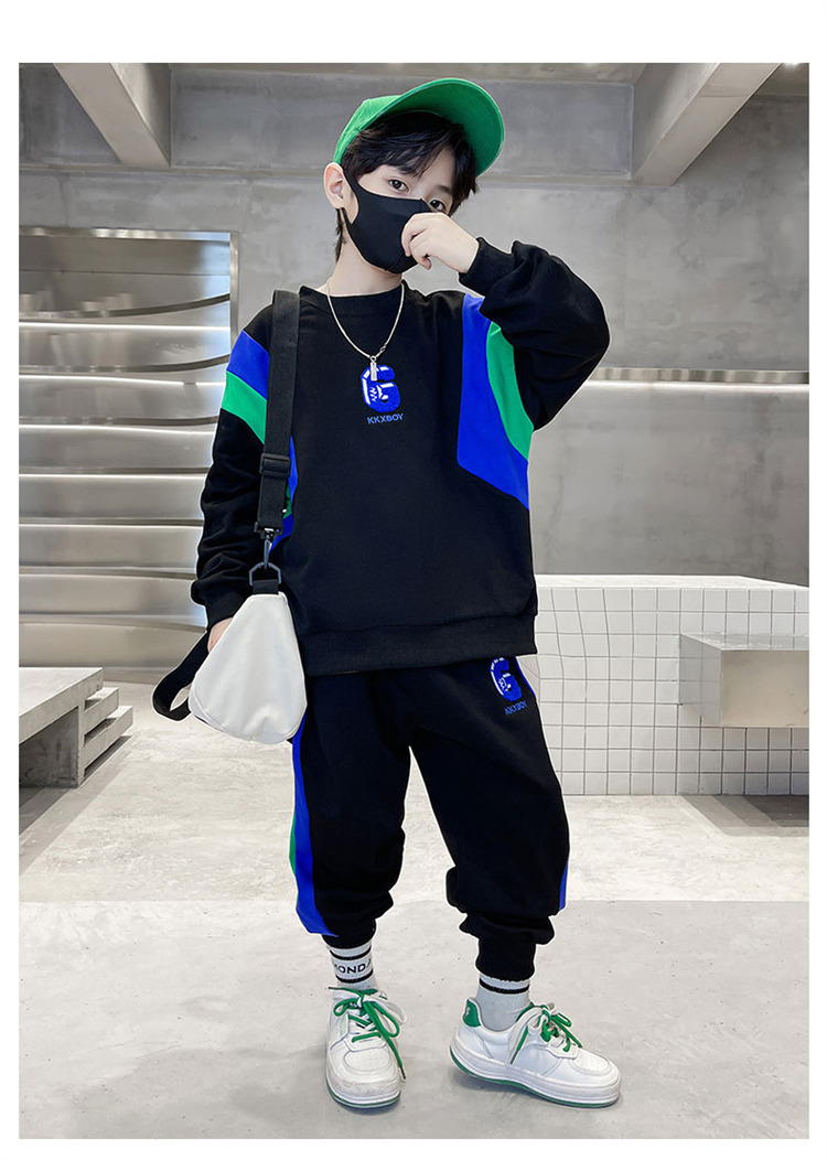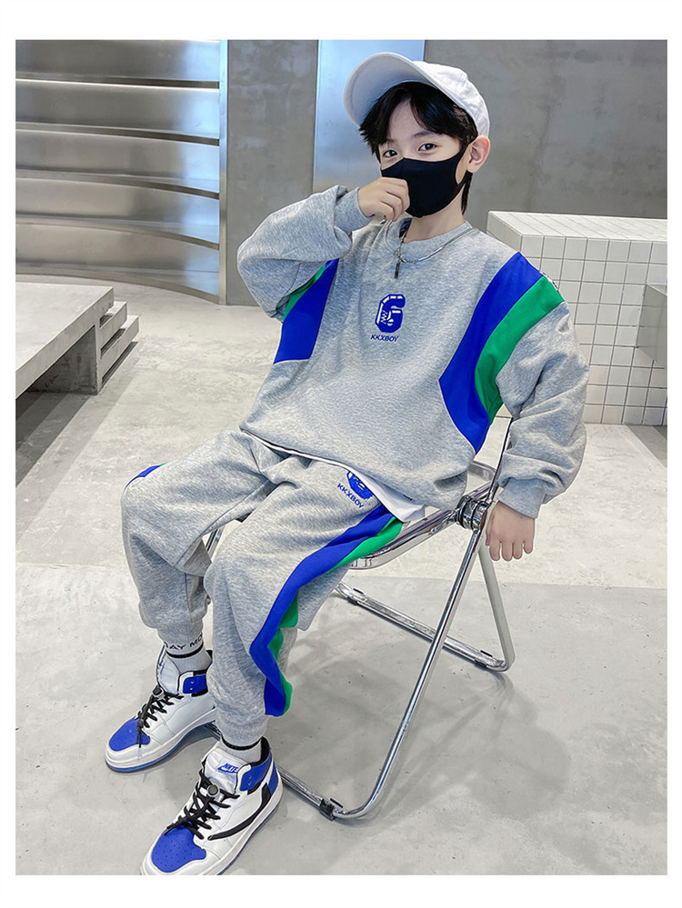 소년 스웨트 셔츠 세트 2024 봄과 가을 새로운 중대 어린이 서양식 봄 원피스 잘 생긴 거리 대비 캐주얼 투피스 세트