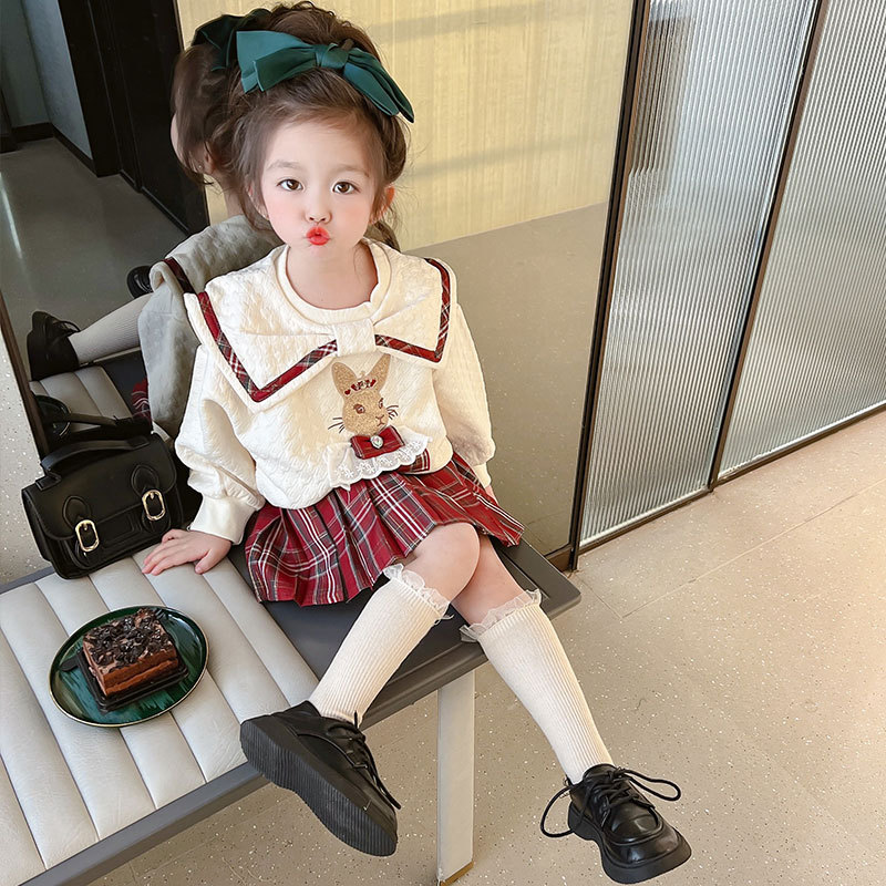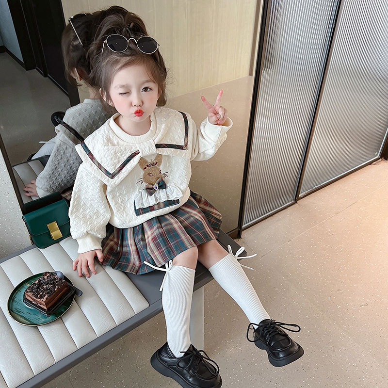 여아 아동 의류 유행 세트 서양 스타일 아기 여아 대학 스타일 봄과 가을 2 피스 어린이 인터넷 연예인 튀김 거리 가을 옷스토어 가기