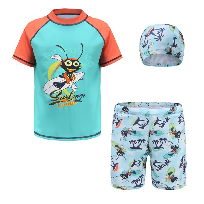 대외 무역 선호 어린이 수영복 만화 패턴 반팔 아기 소년 수영 트렁크 하이 퀄리티 수영 세트 도매스토어 가기