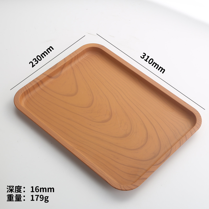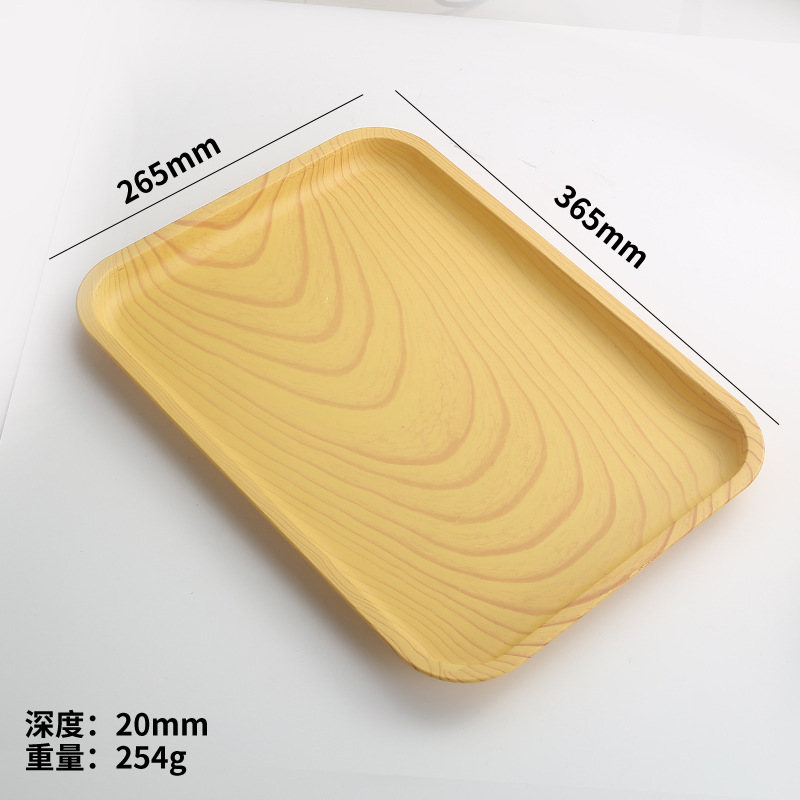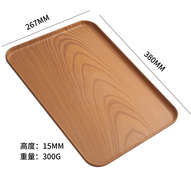 공장 직공급 모조 나뭇결 직사각형 트레이 ind 바람 물 트레이 폭발 등 고급 플라스틱 모조 오크 곡물 트레이스토어 가기